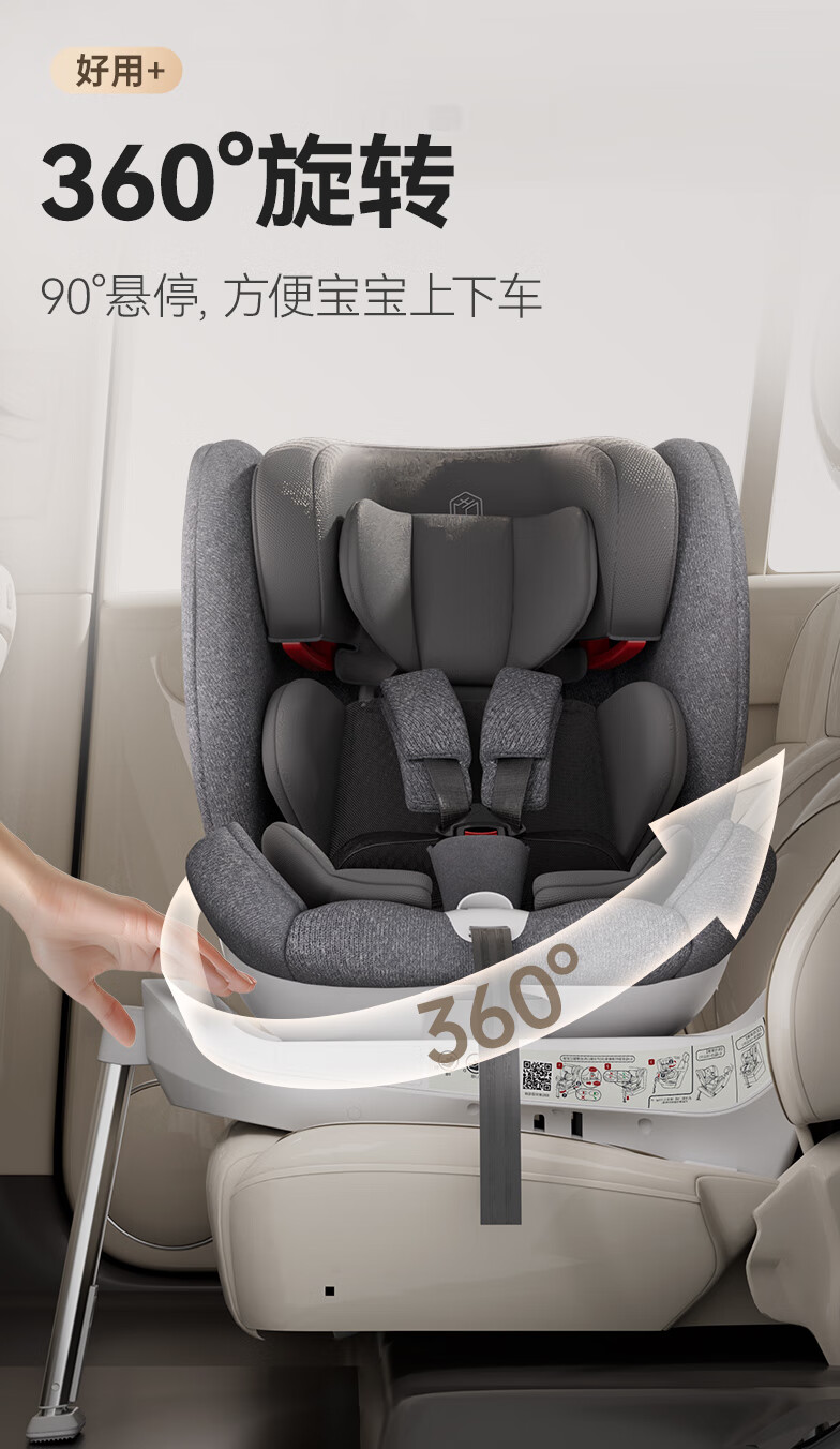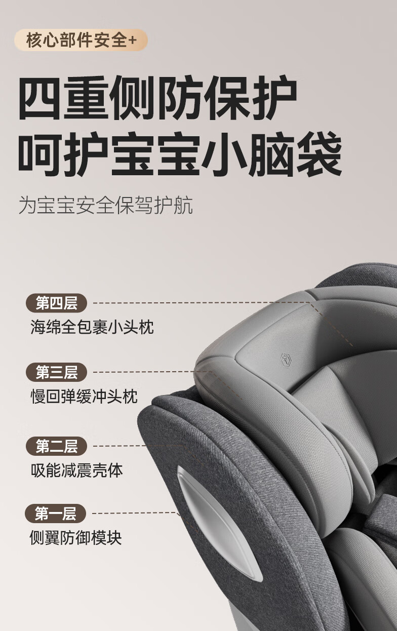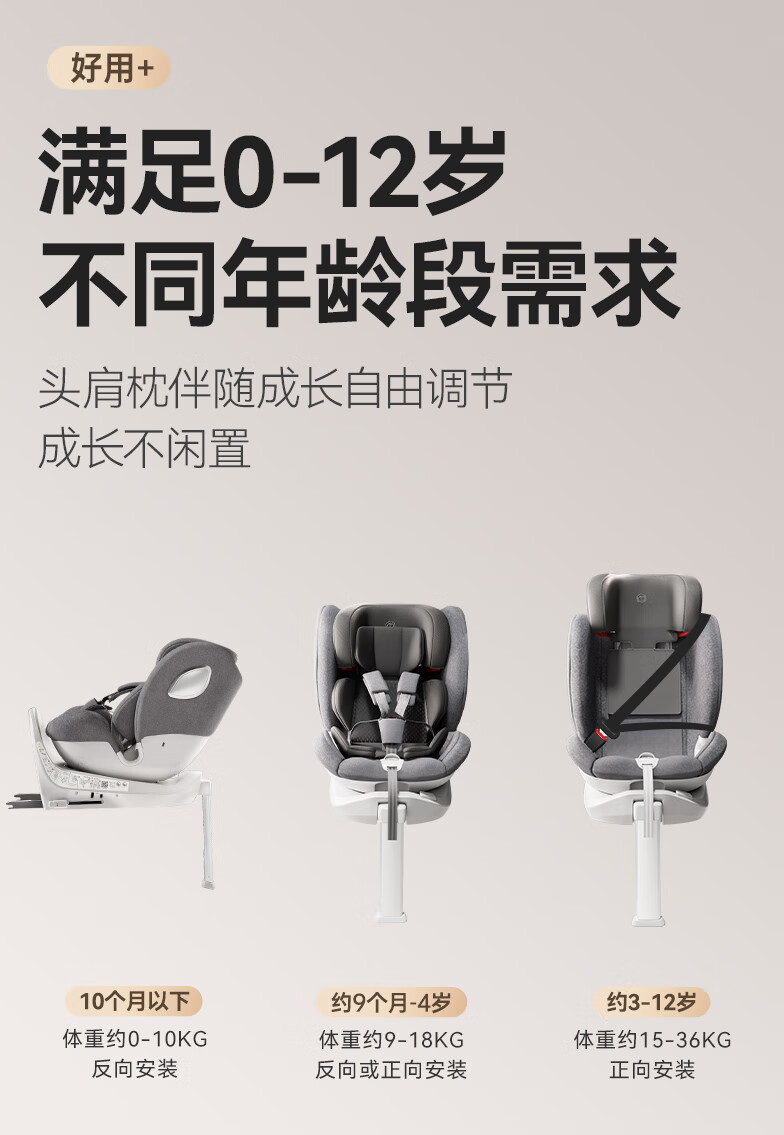 京东京造儿童安全座椅汽车0-6-12岁婴儿宝宝i-Safe双通风 商务舱pro典雅灰