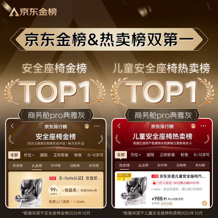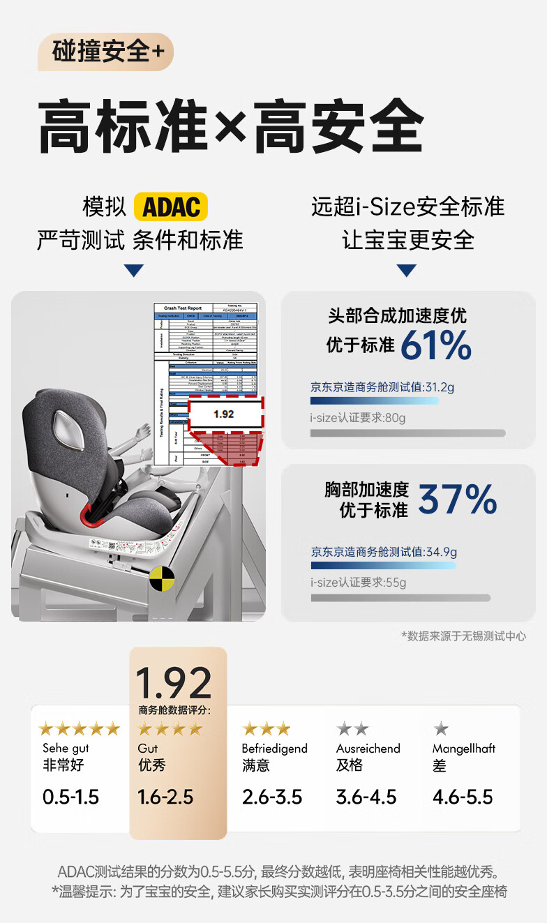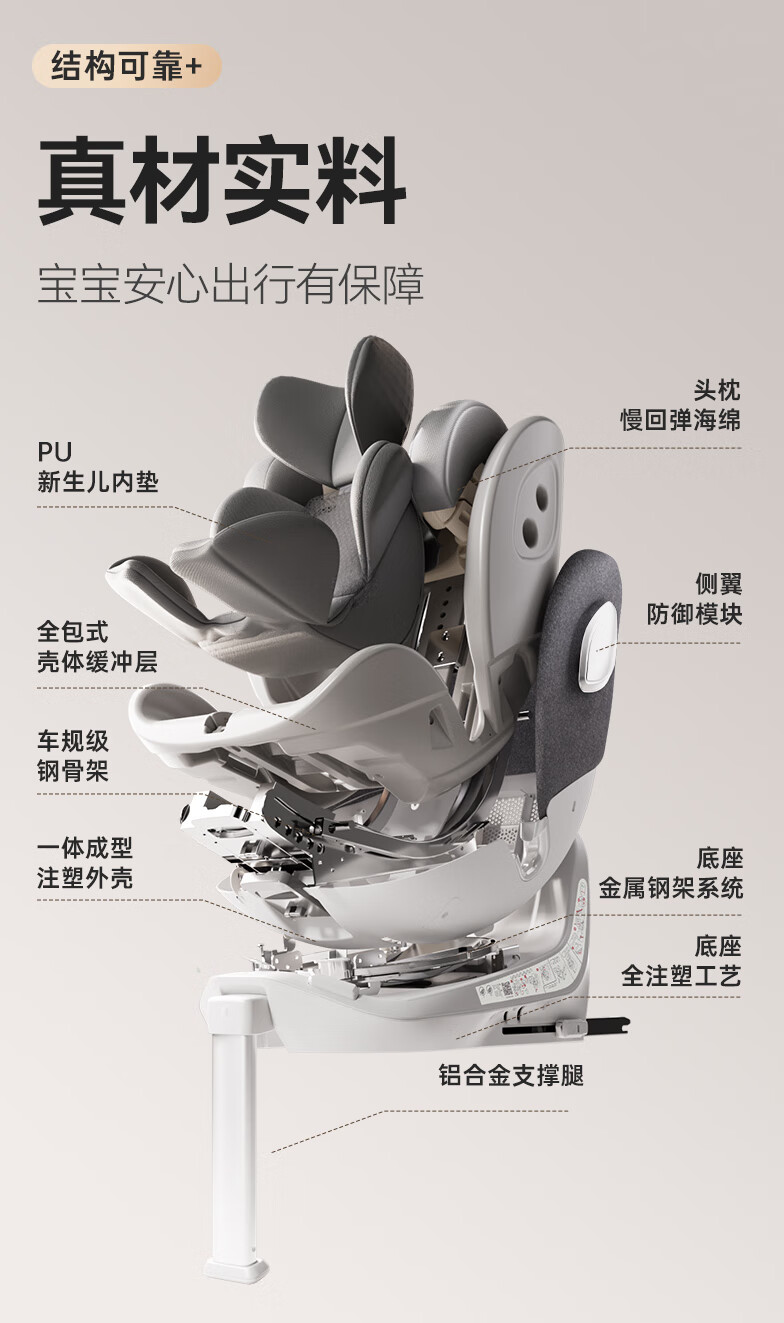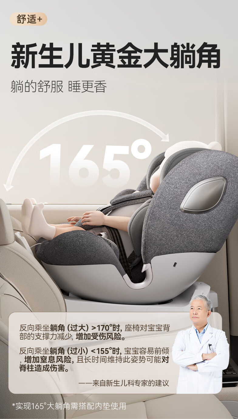 京东京造儿童安全座椅汽车0-6-12岁婴儿宝宝i-Safe双通风 商务舱pro典雅灰