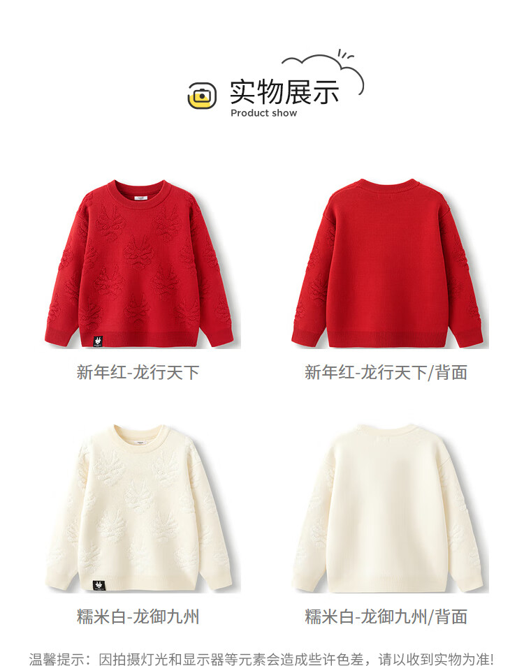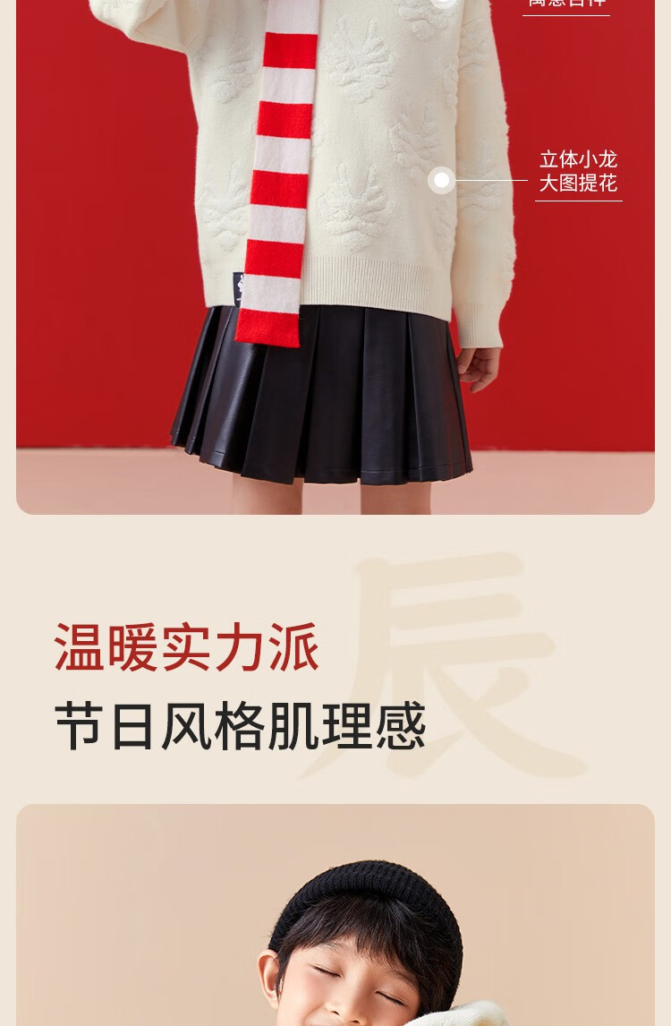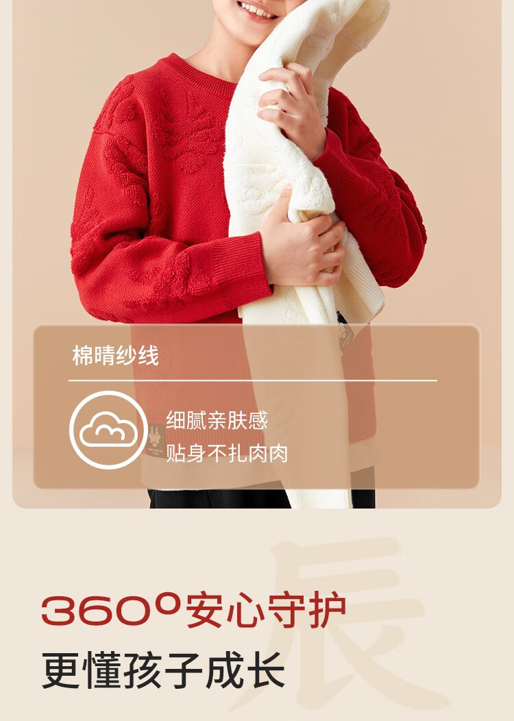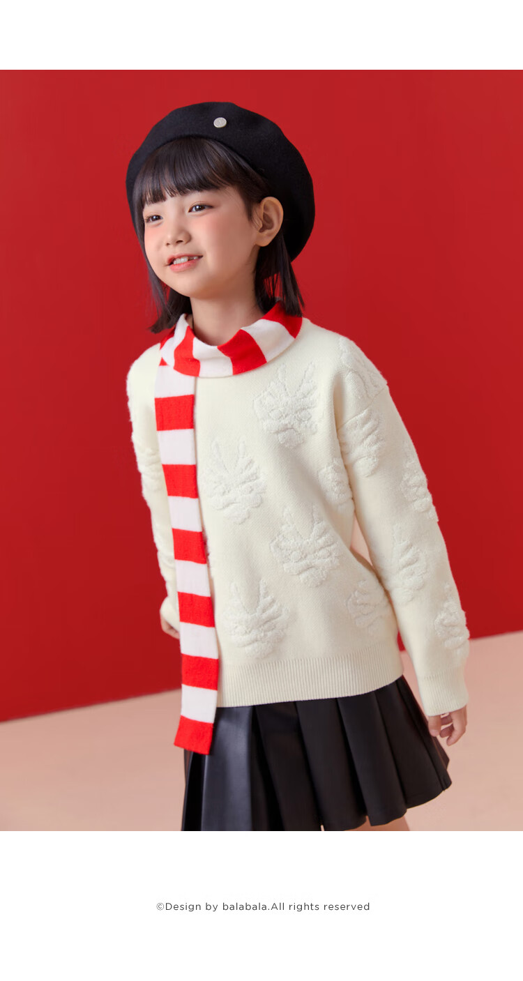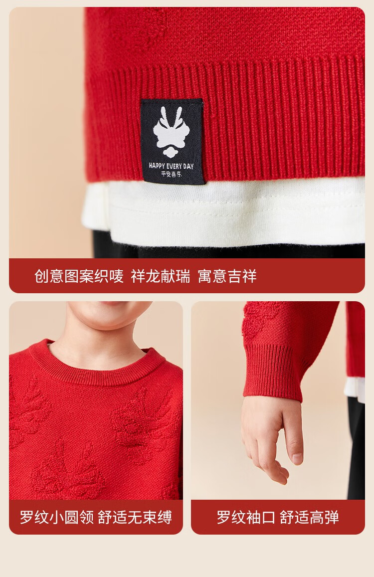 巴拉巴拉男童毛衣秋装女儿童圆领红色新年季针织洋气上衣拜年服 糯米白-龙御九州-10302 90cm