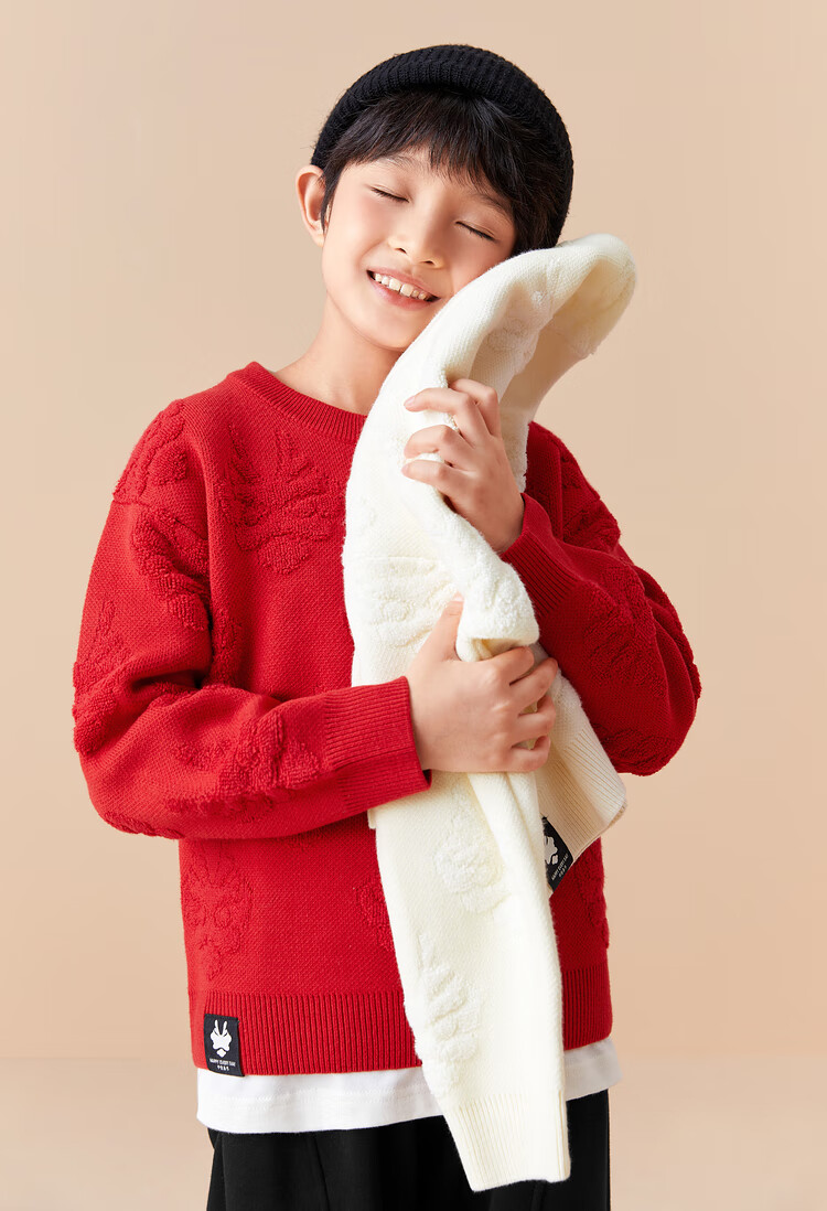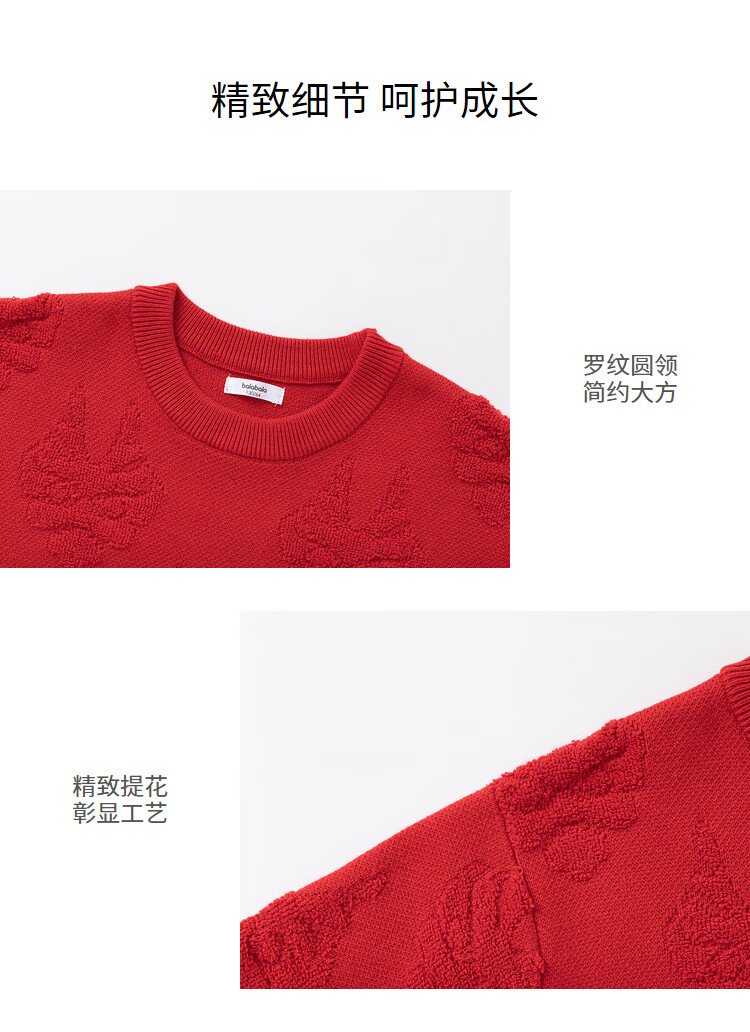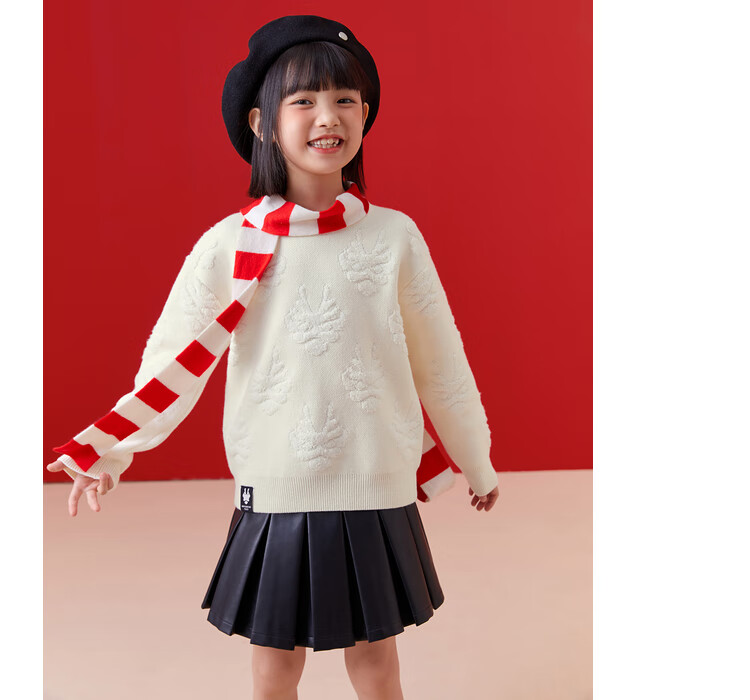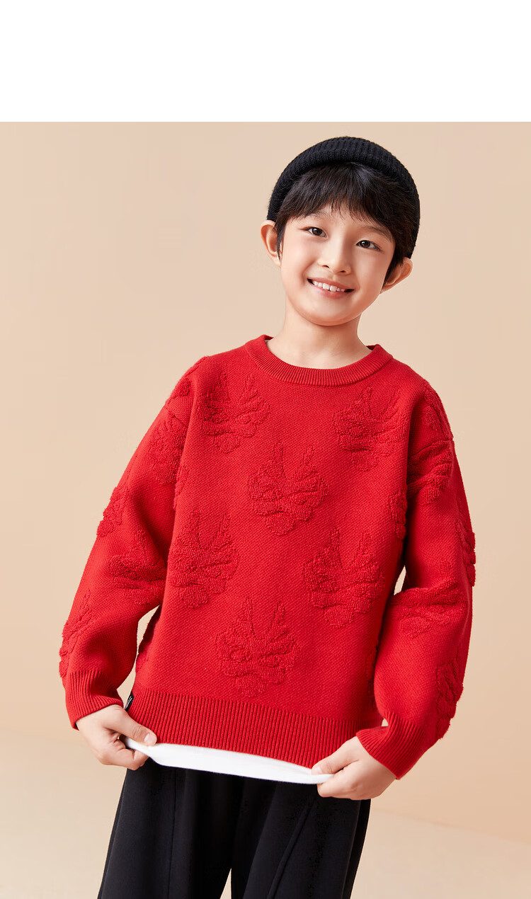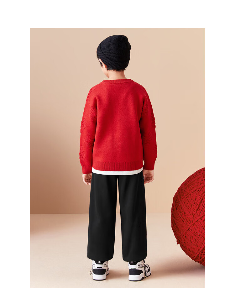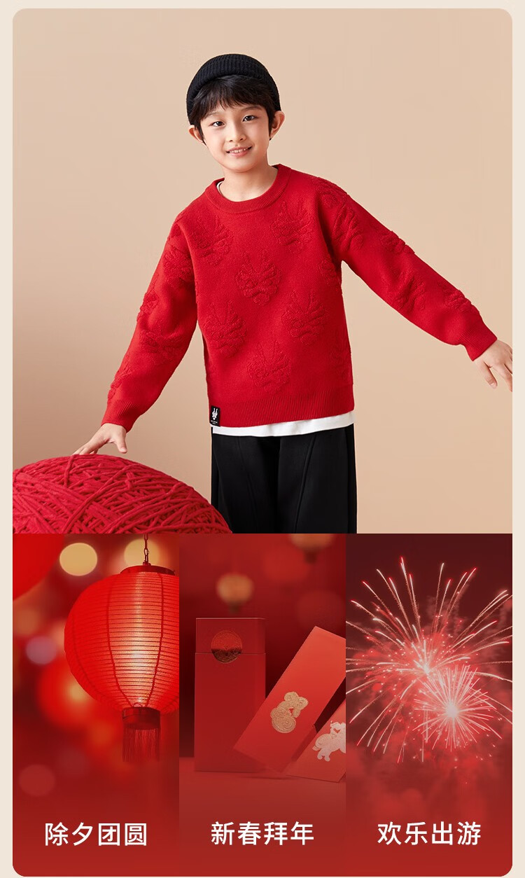 巴拉巴拉男童毛衣秋装女儿童圆领红色新年季针织洋气上衣拜年服 糯米白-龙御九州-10302 90cm