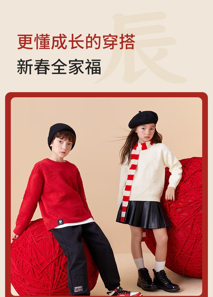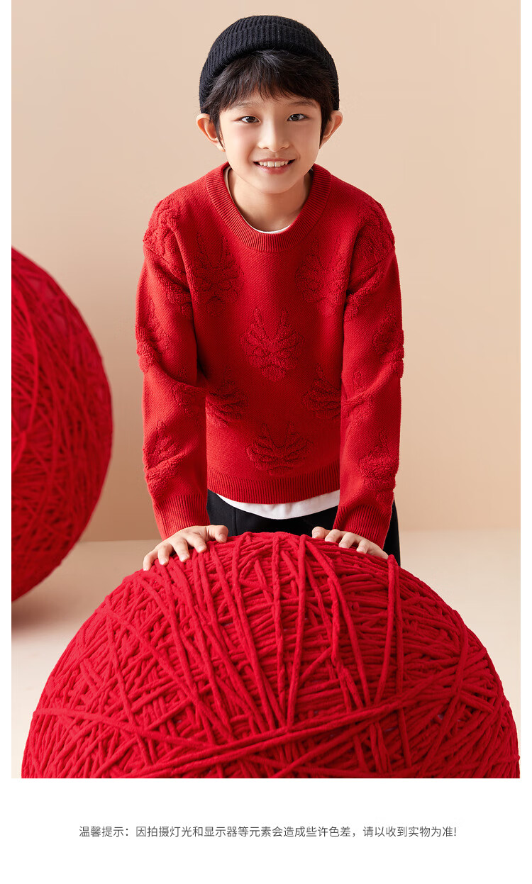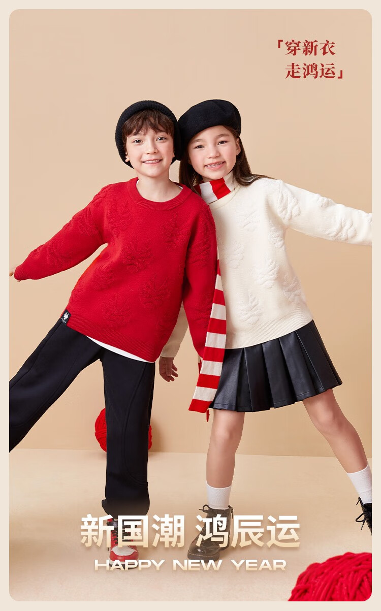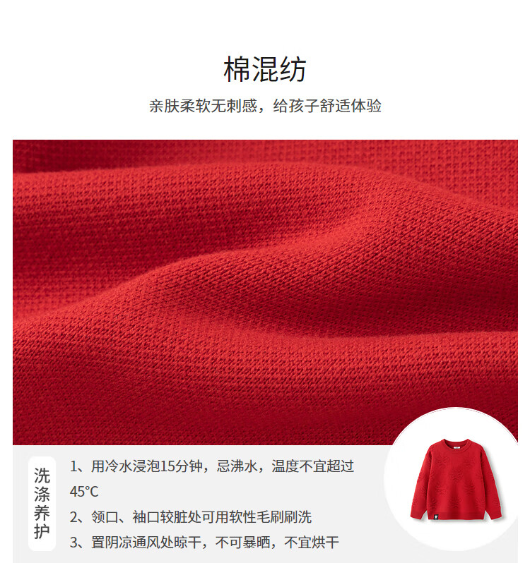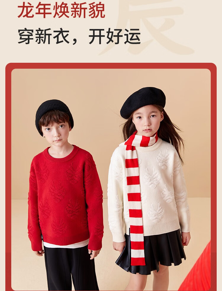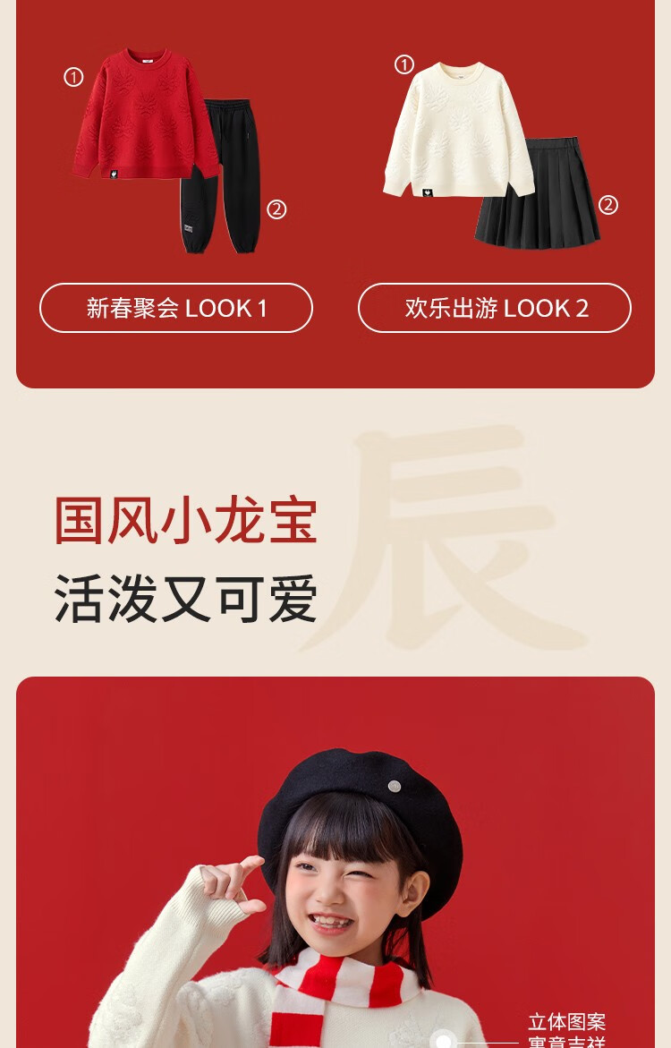 巴拉巴拉男童毛衣秋装女儿童圆领红色新年季针织洋气上衣拜年服 糯米白-龙御九州-10302 90cm