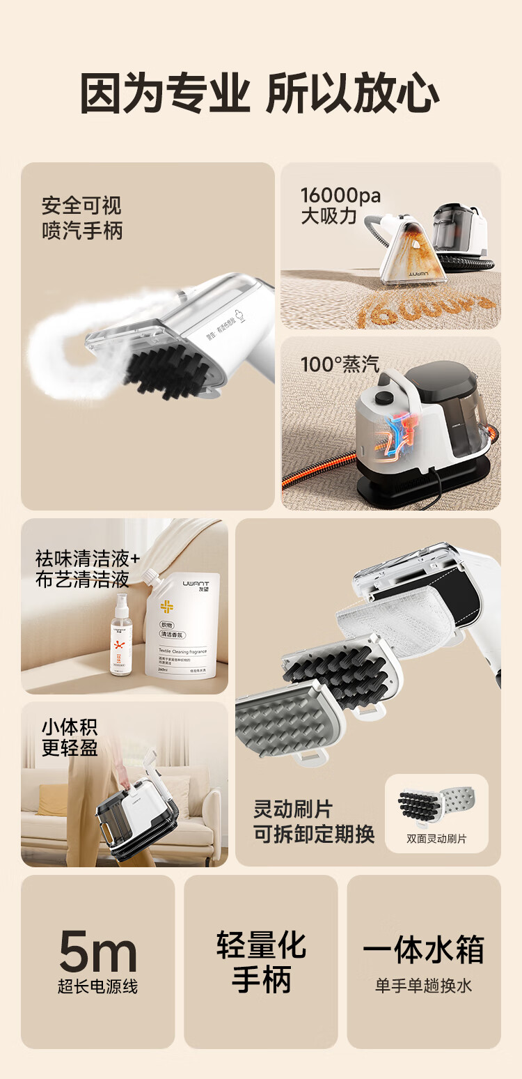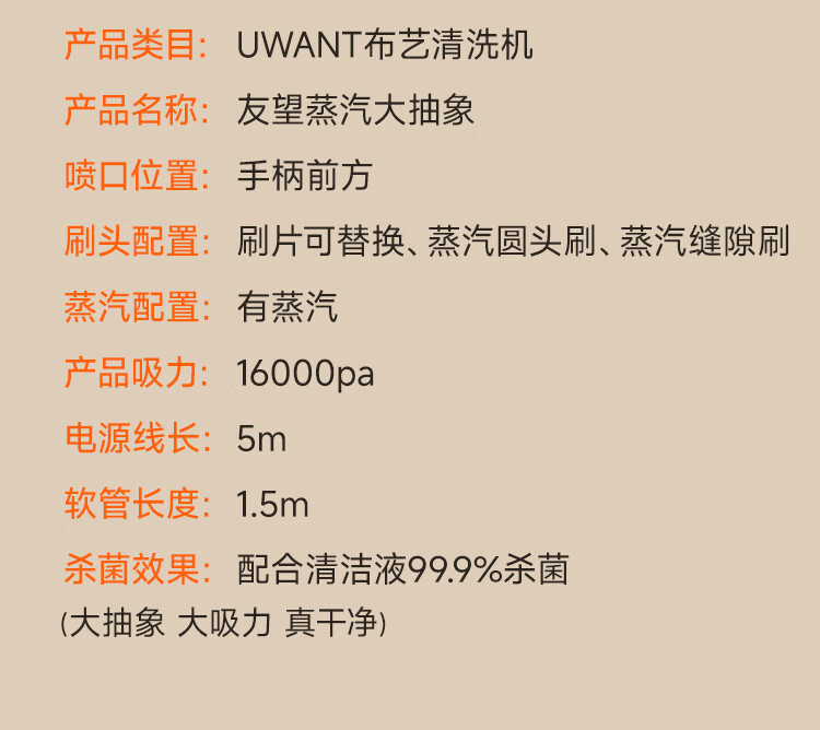 uwant友望蒸汽清洁机布艺清洗机高温洗吸一体家用地毯沙发床垫全屋多功能拖地吸尘神器大抽象steam