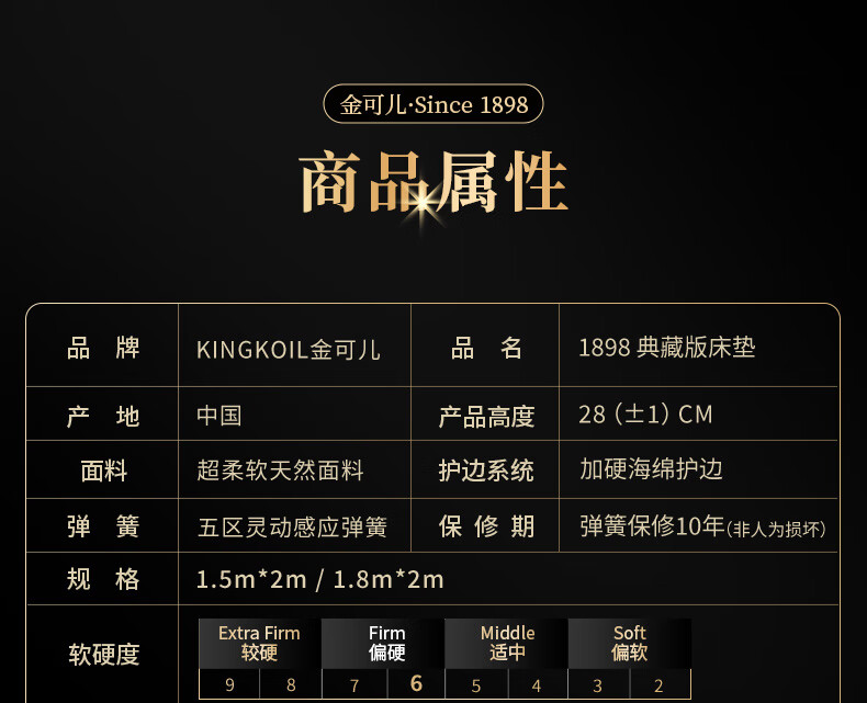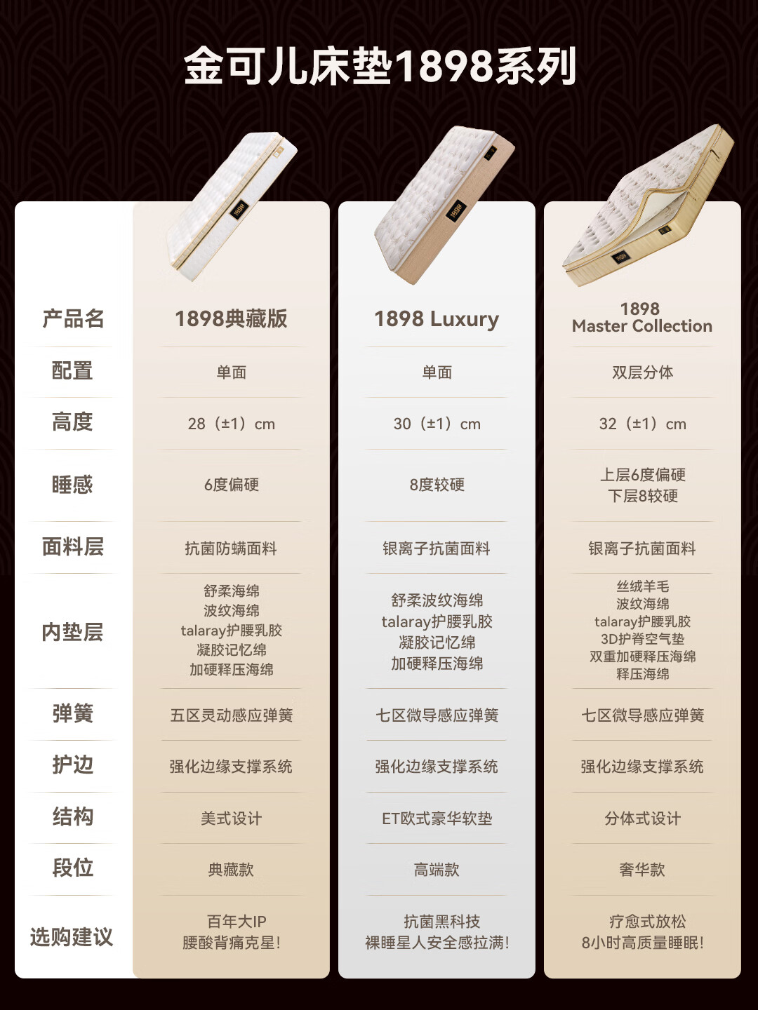 金可儿(Kingkoil)乳胶床垫五分区独立弹簧床垫1898典藏款 1.8*2米软硬适中