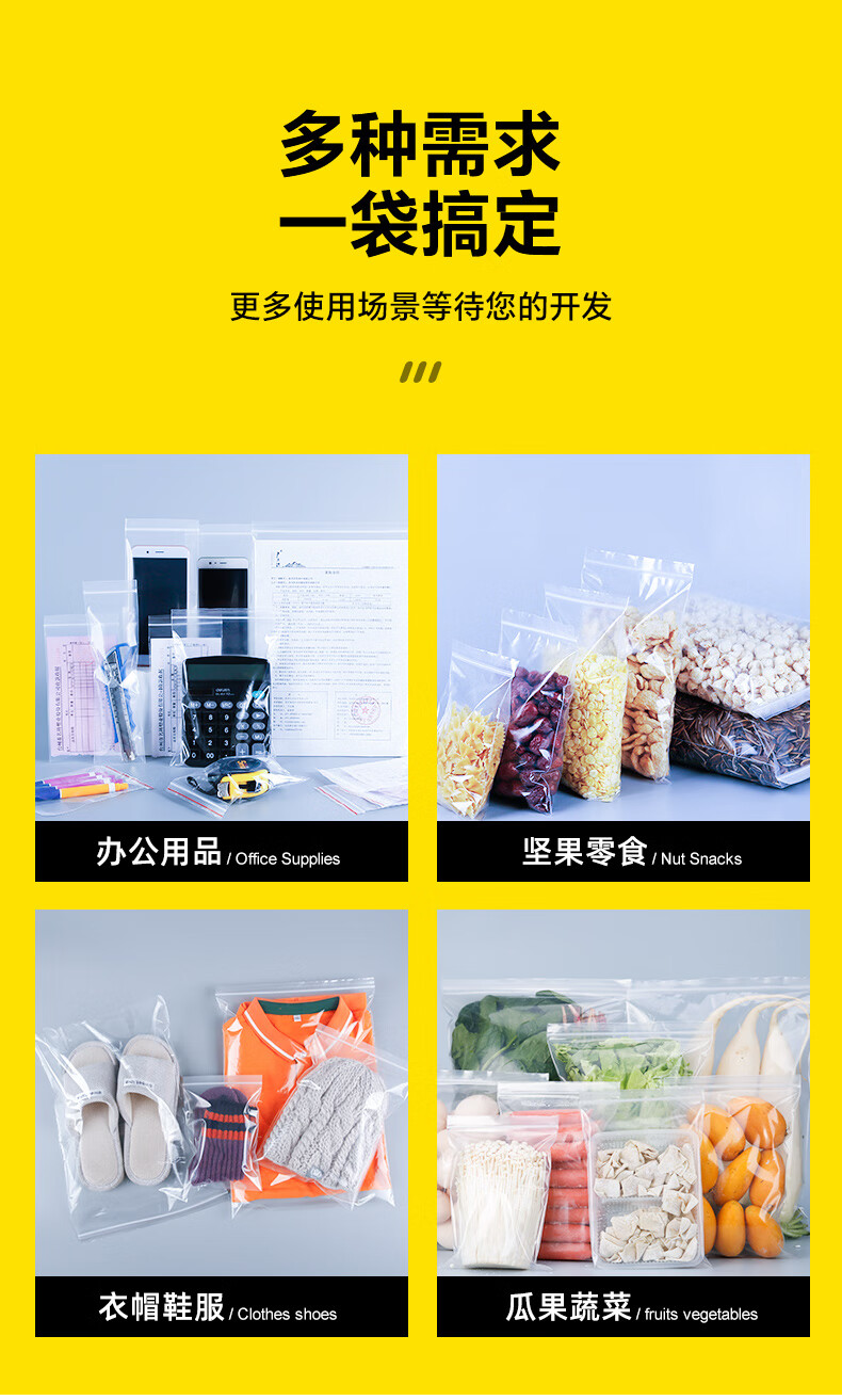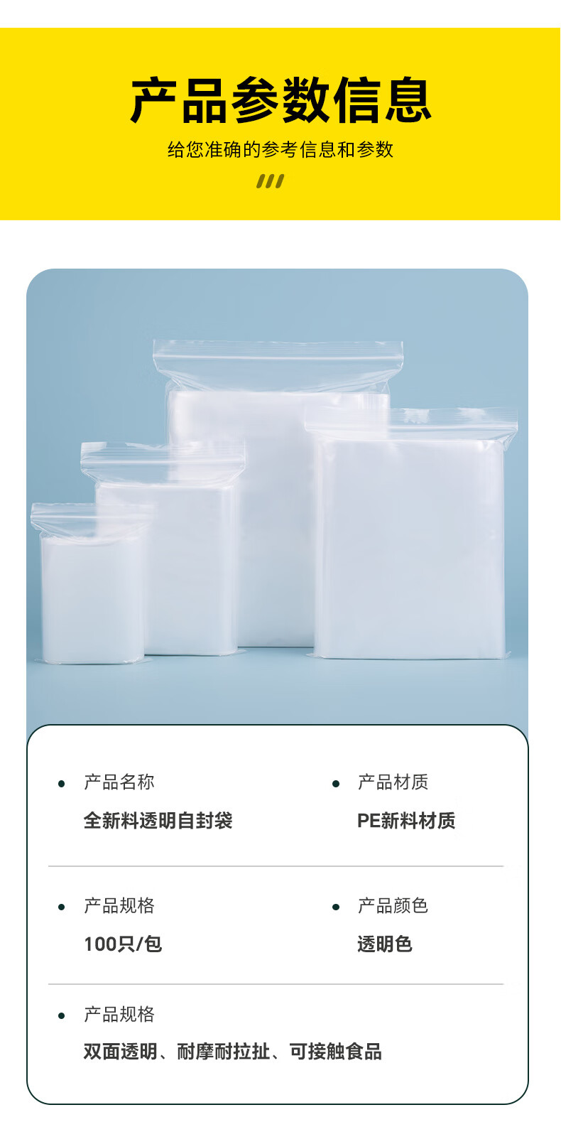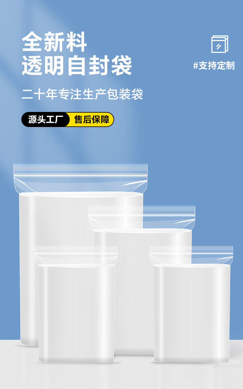 网诺自封袋透明加厚密封袋食品级PE封口袋分装样品大号塑料袋防水包装袋子 白边7号特厚100只【14*20】12丝