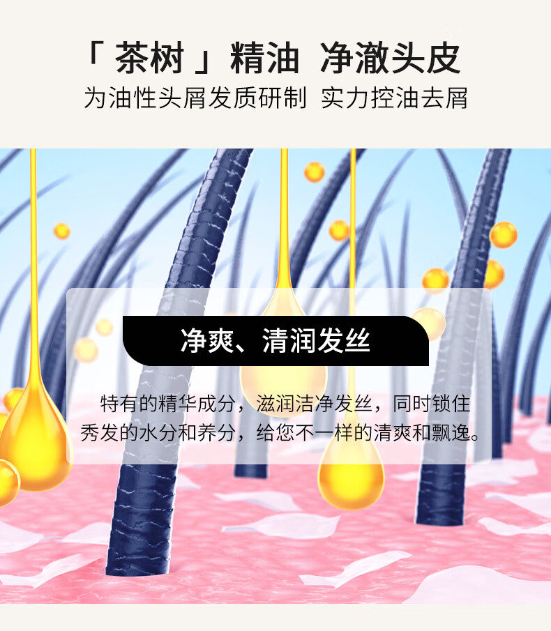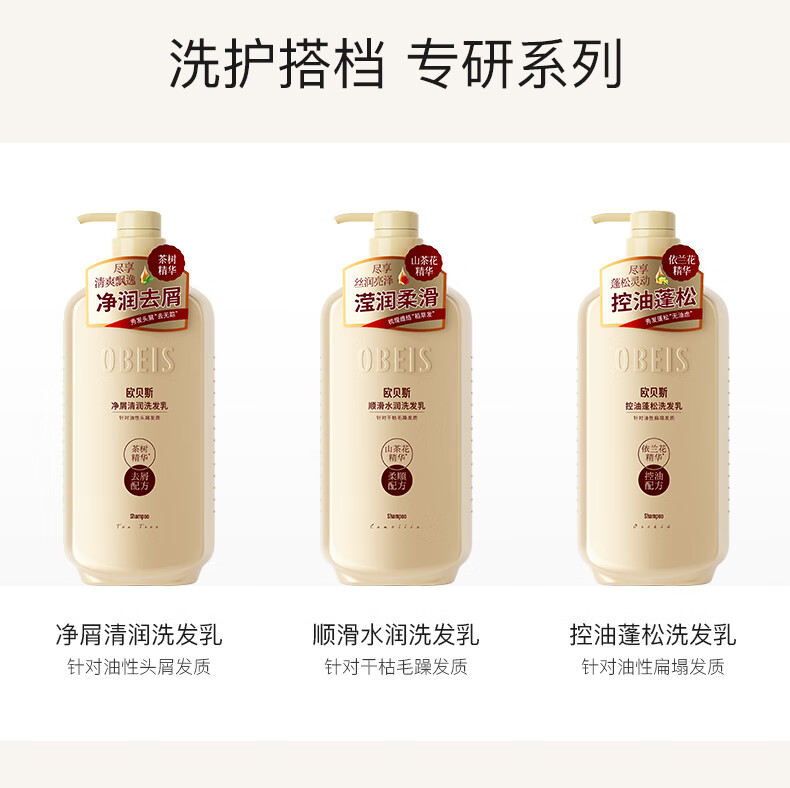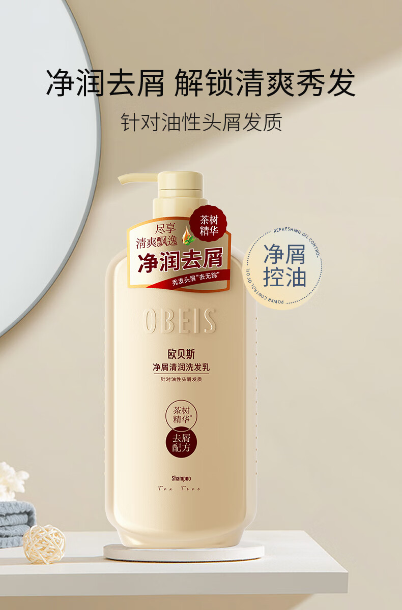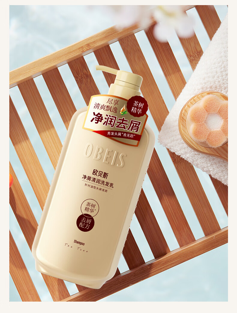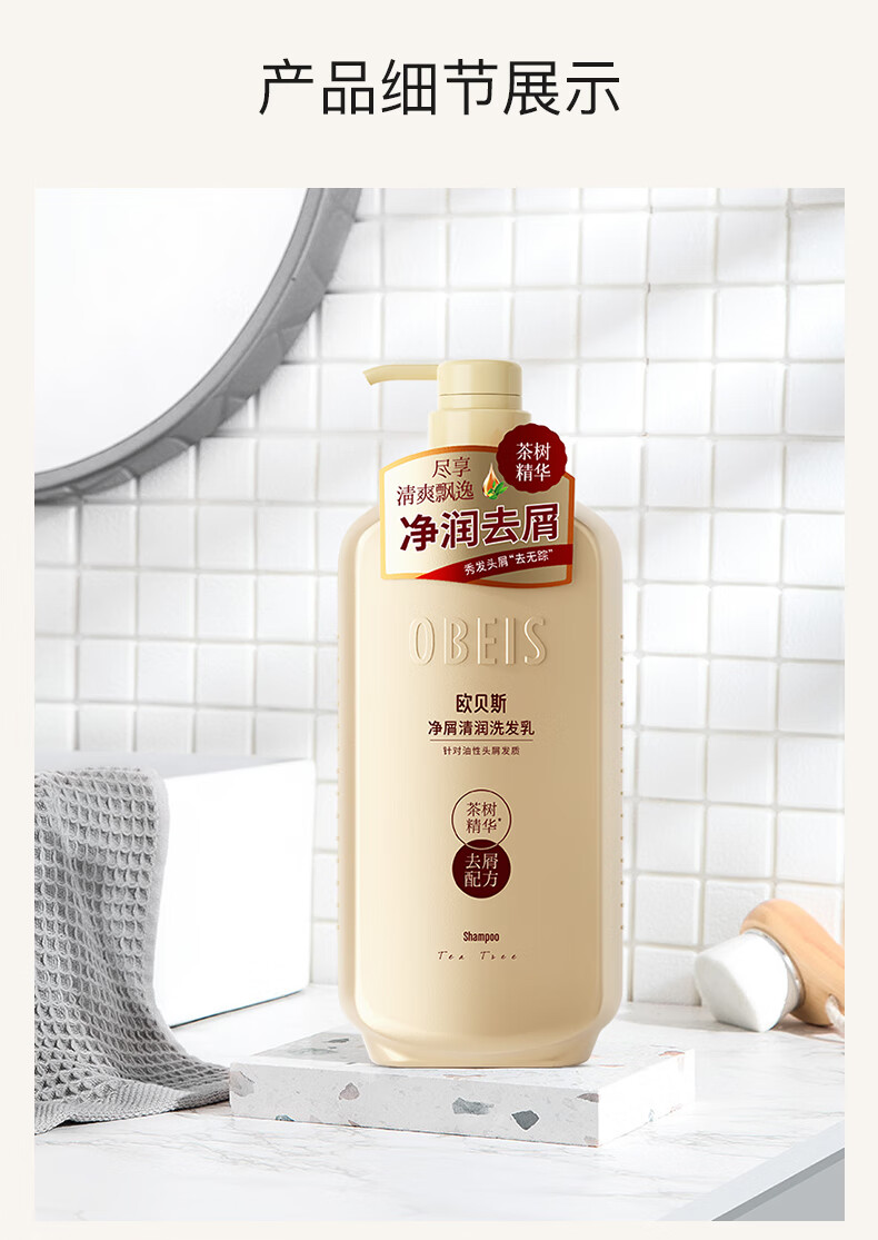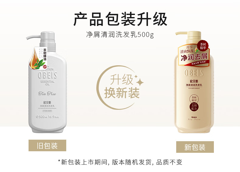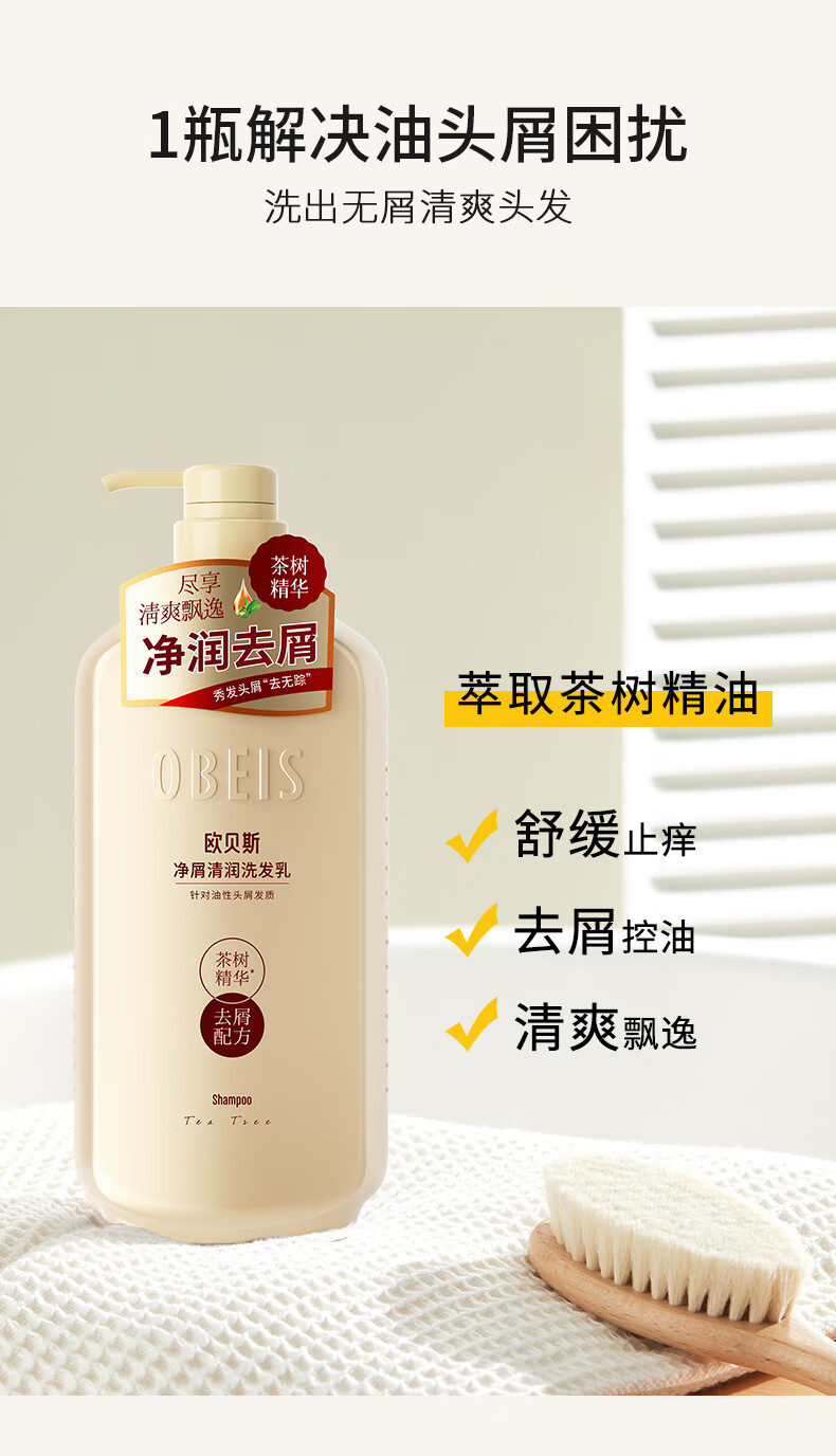 欧贝斯(obeis)精油奢养去屑洗发水500ml茶树精油舒缓止痒洗发露男女通用洗头膏