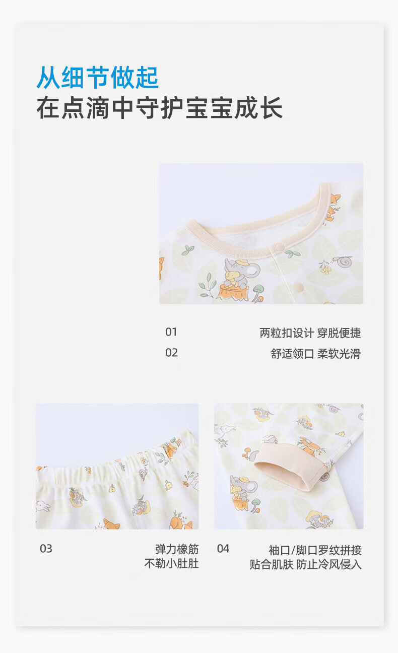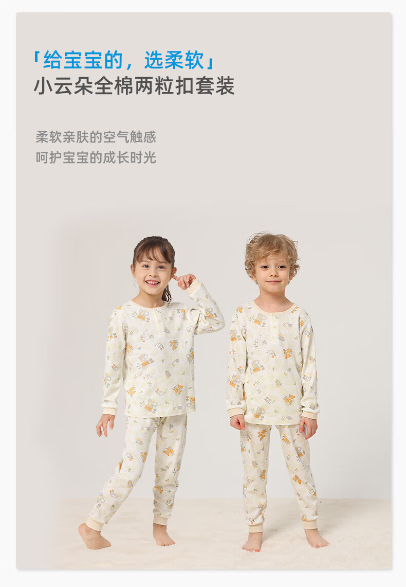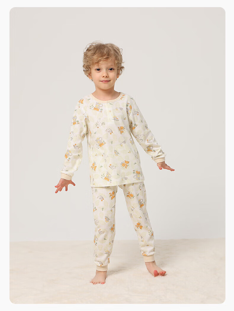 丽婴房(Les enphants)儿童内衣套装全棉长袖长裤家居服套装宝宝秋衣秋裤套装 萌宠总动员(两粒扣) 110 cm