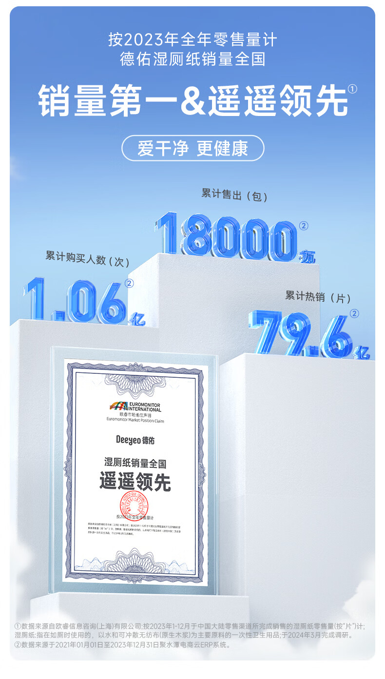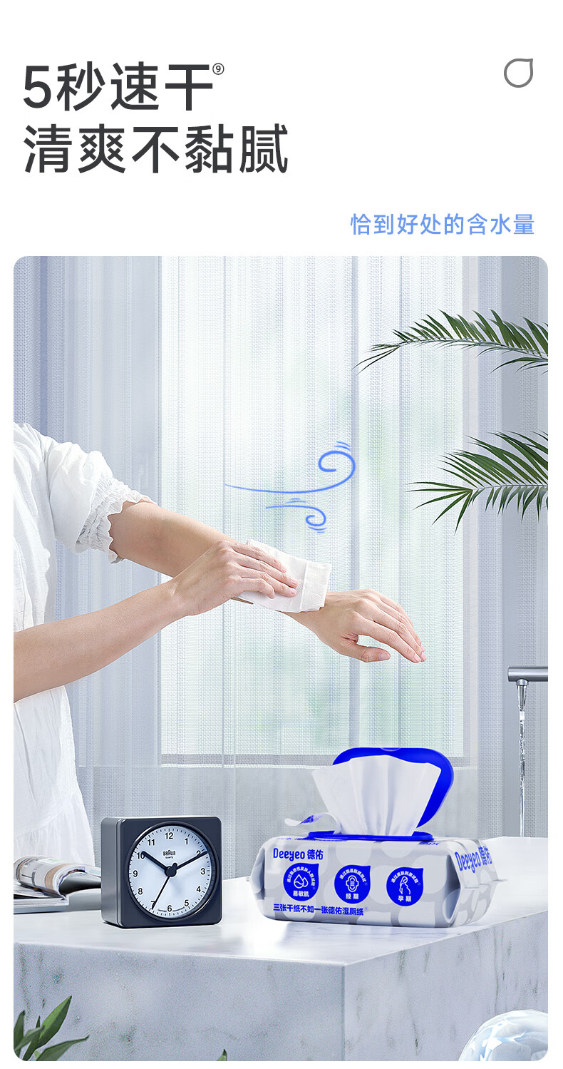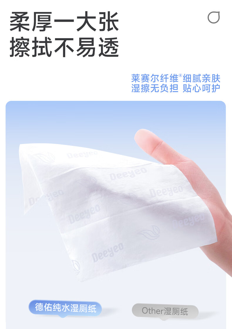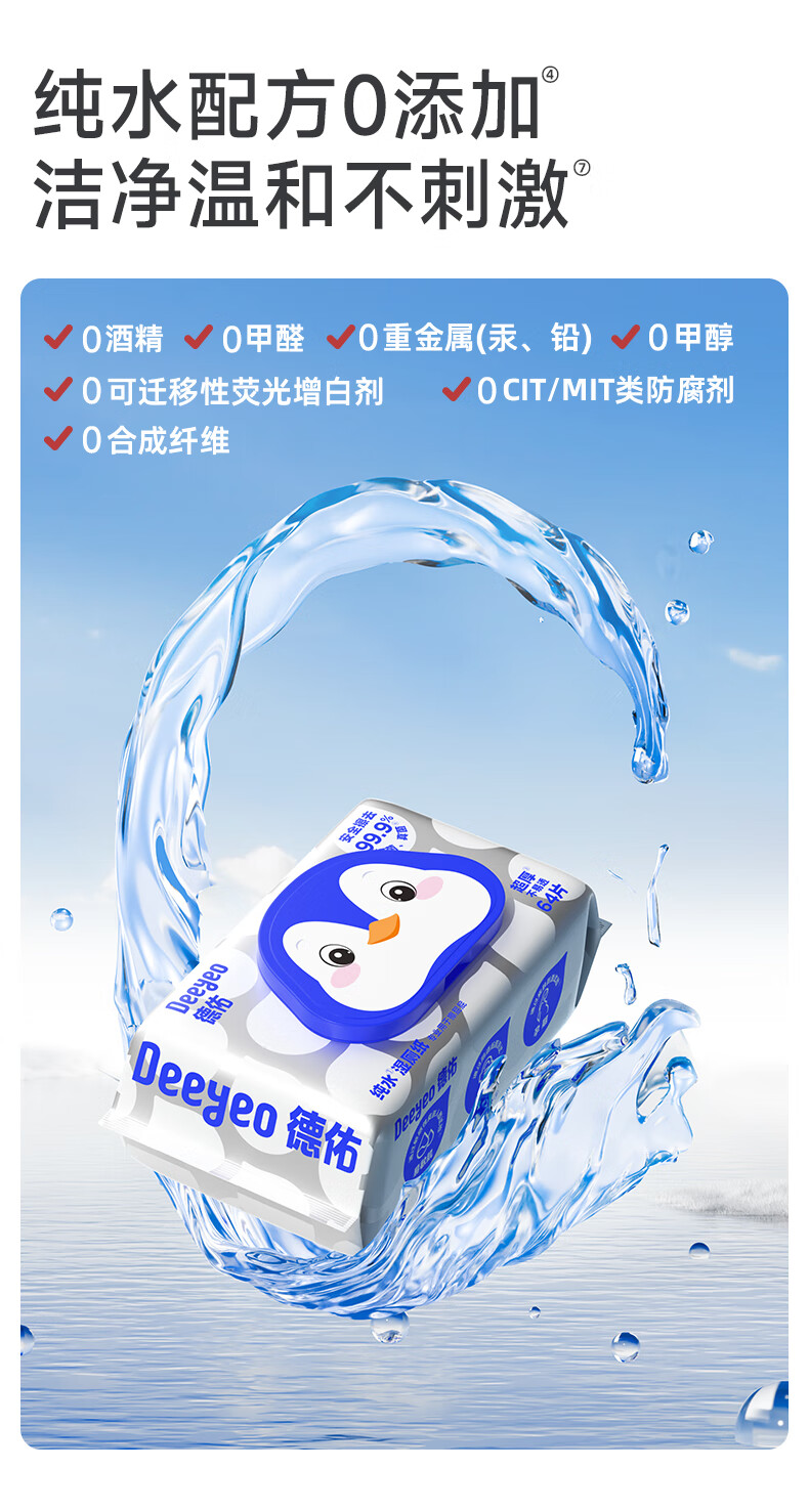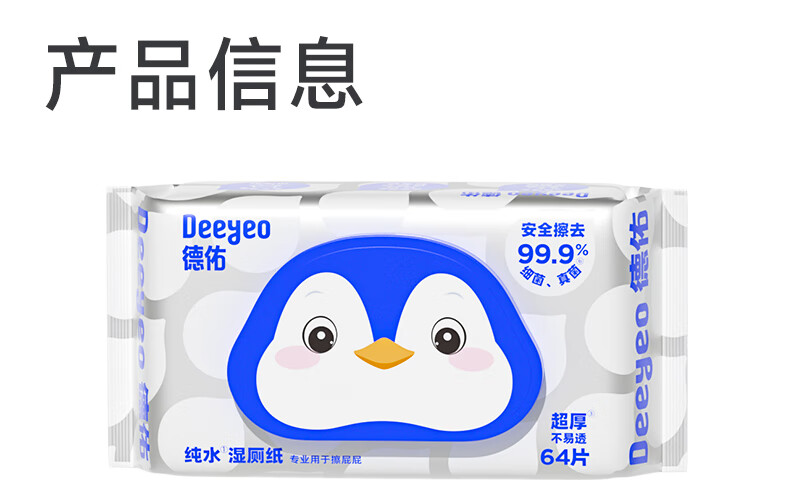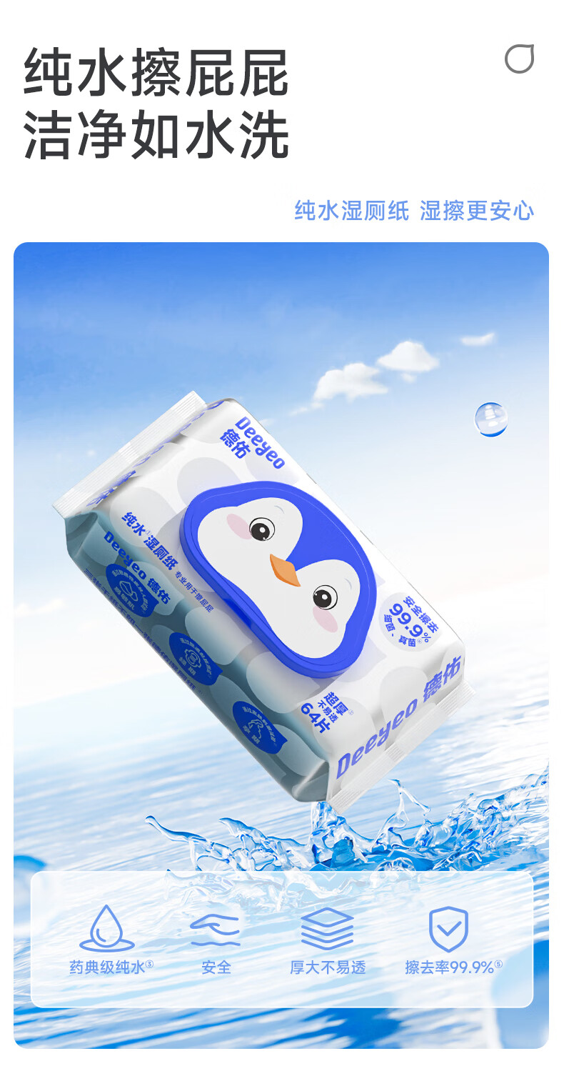 德佑纯水湿厕纸64抽家庭装99.9%深层杀菌清洁如厕卫生湿手纸湿厕巾 【纯水款】 64抽*6包