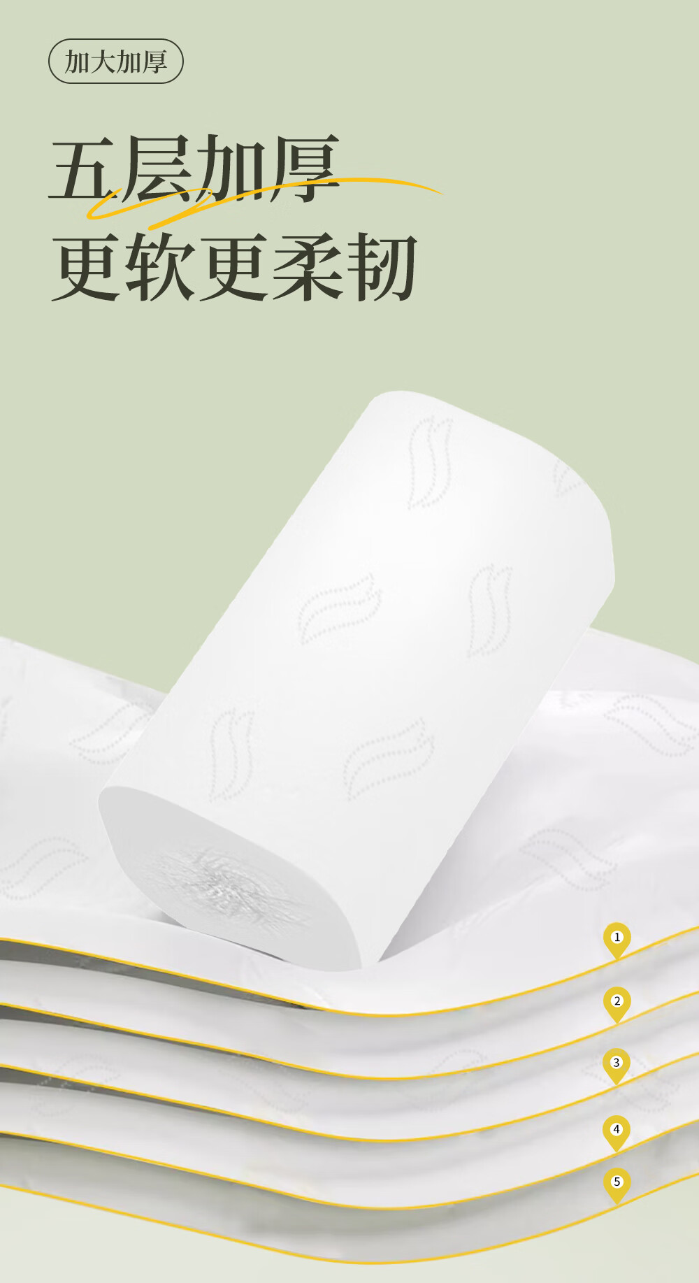 金博仕无芯卷纸厕纸5层加厚可湿水大卷 妇婴用纸 5层 138.89g/卷*18卷 2500克5斤款