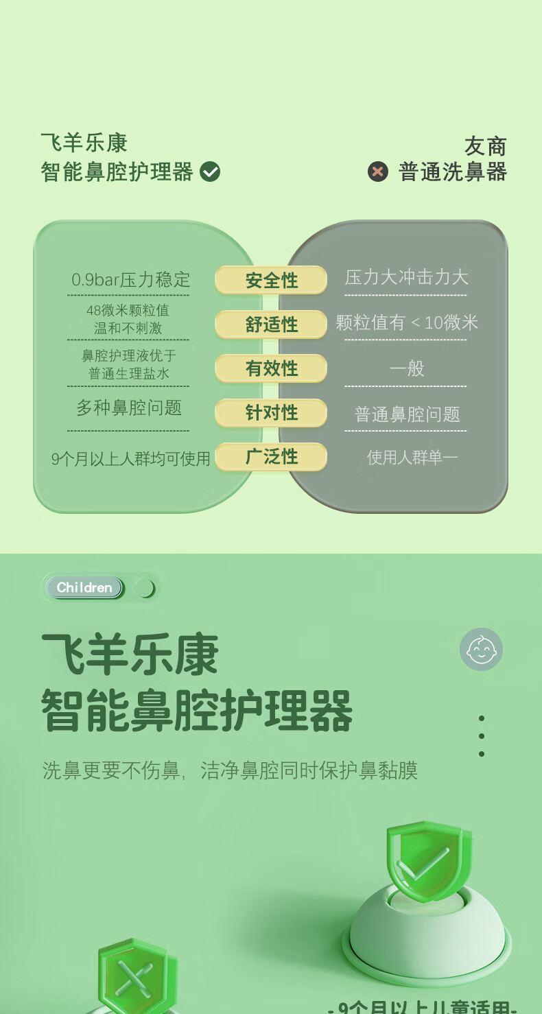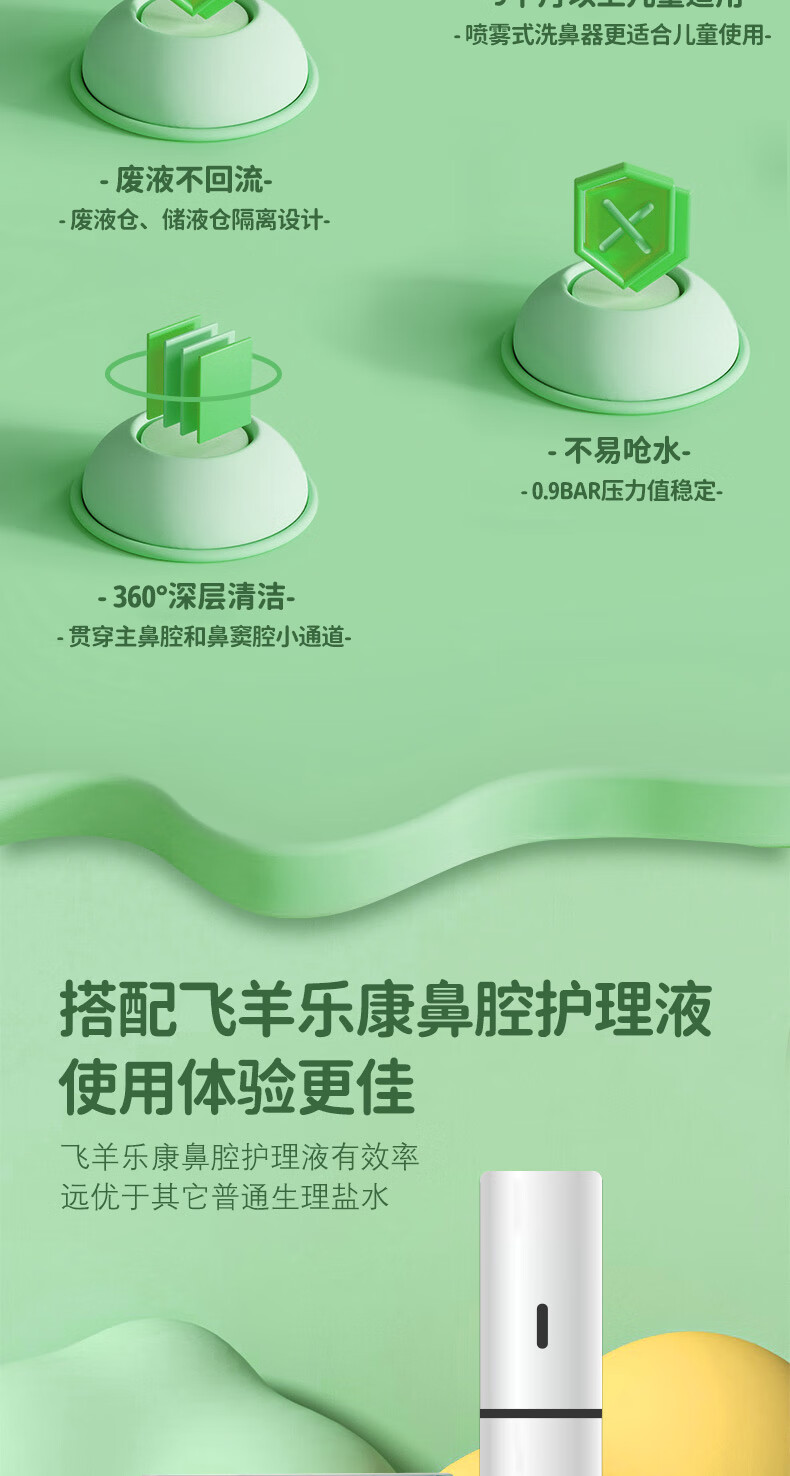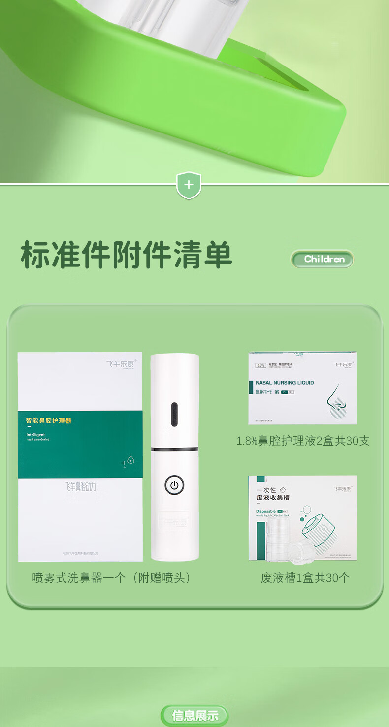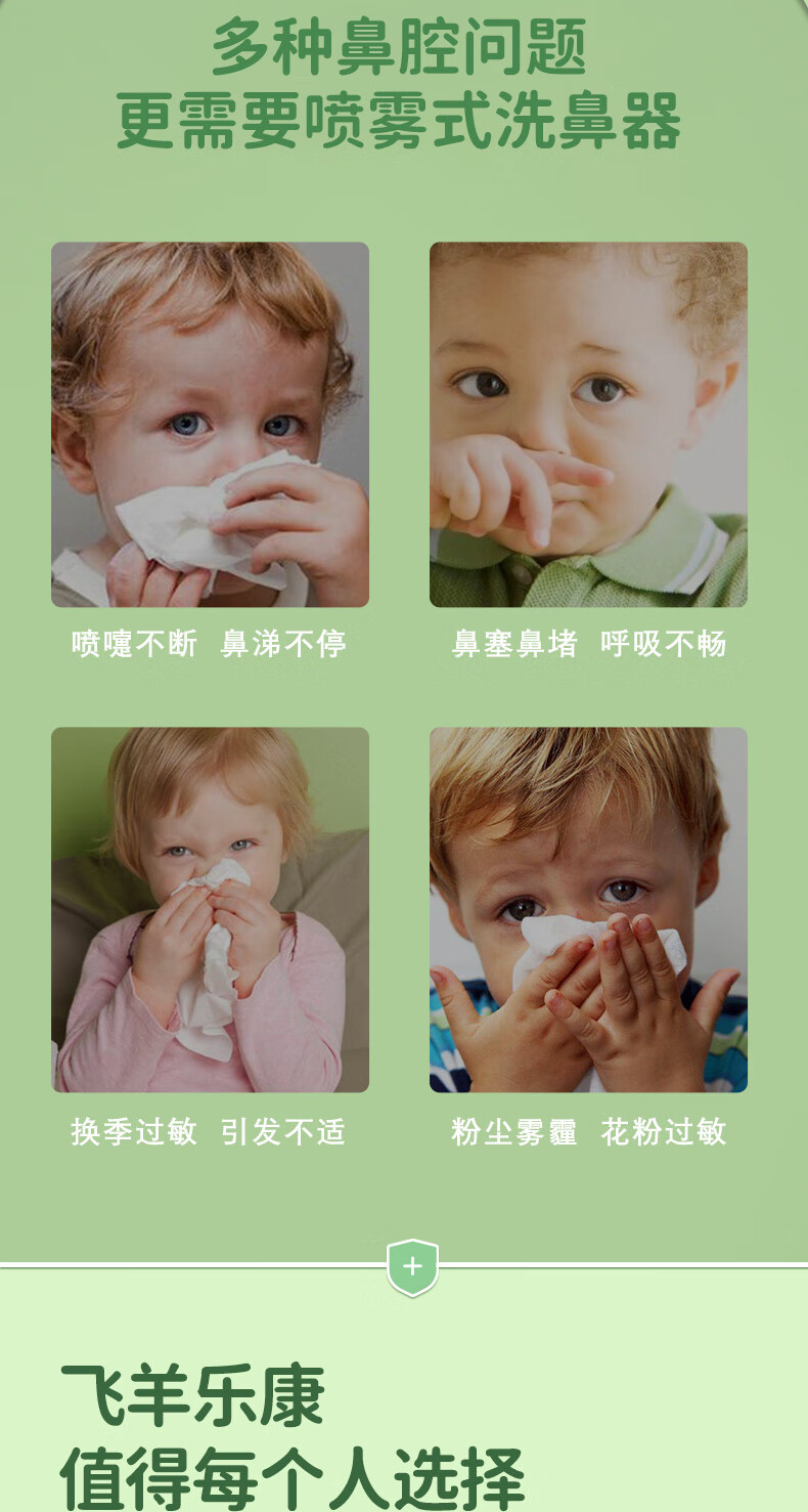 飞羊乐康儿童电动喷雾洗鼻器鼻炎海盐水鼻腔护理套装