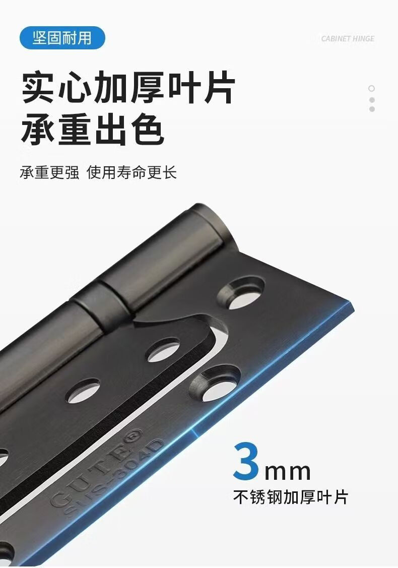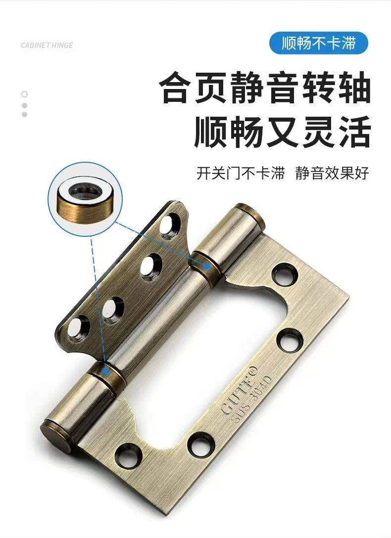 固特不锈钢4寸子母合页免开槽室内房门木门柜门活页铰链 【拉丝钢】4寸-2.5不锈钢丨一片价