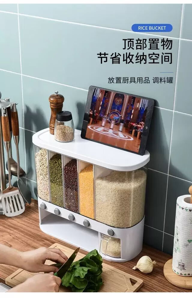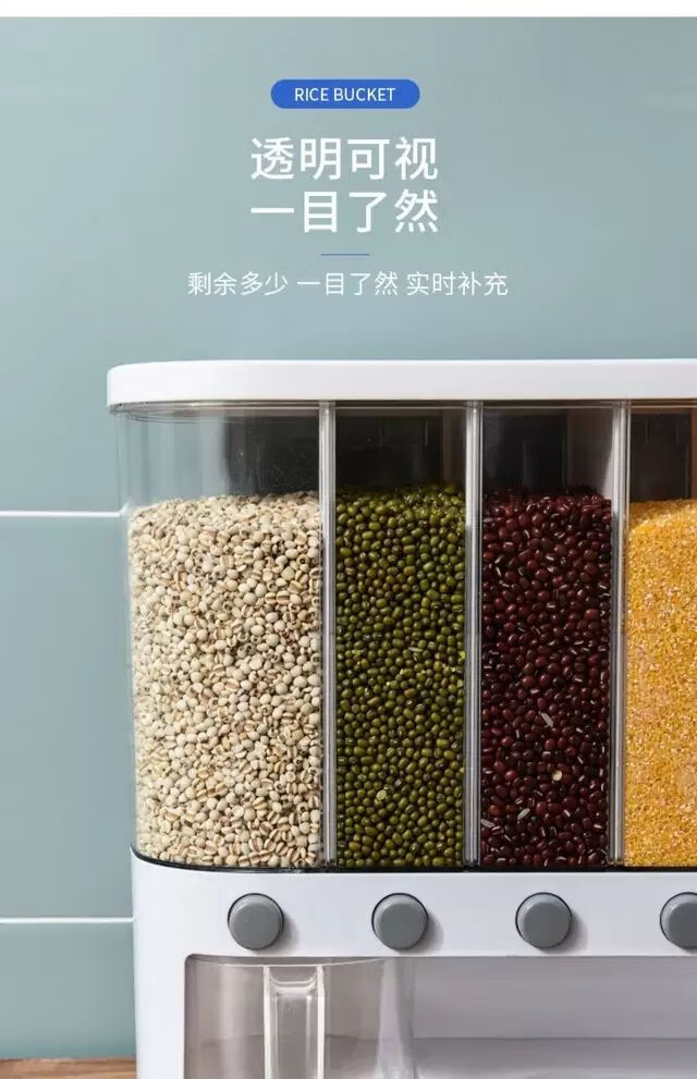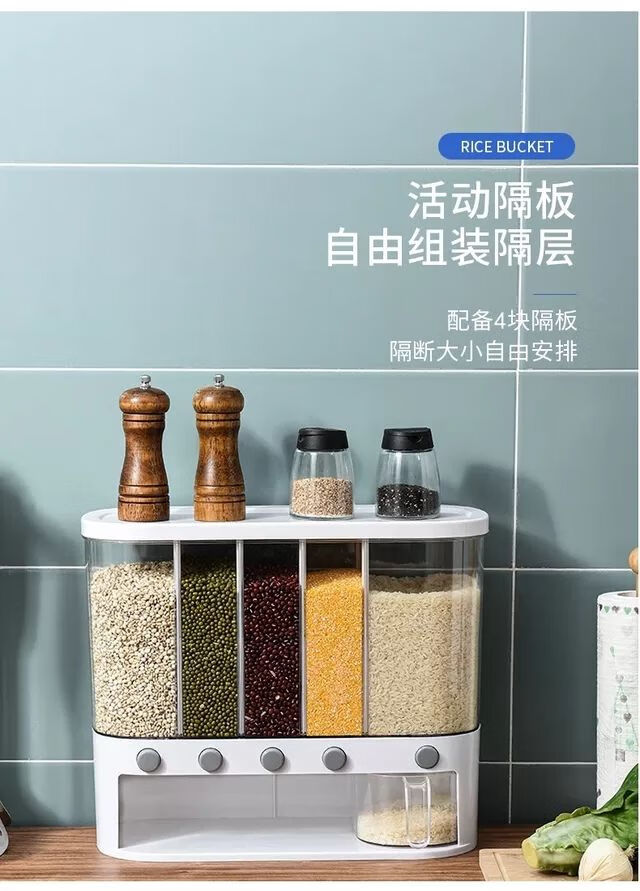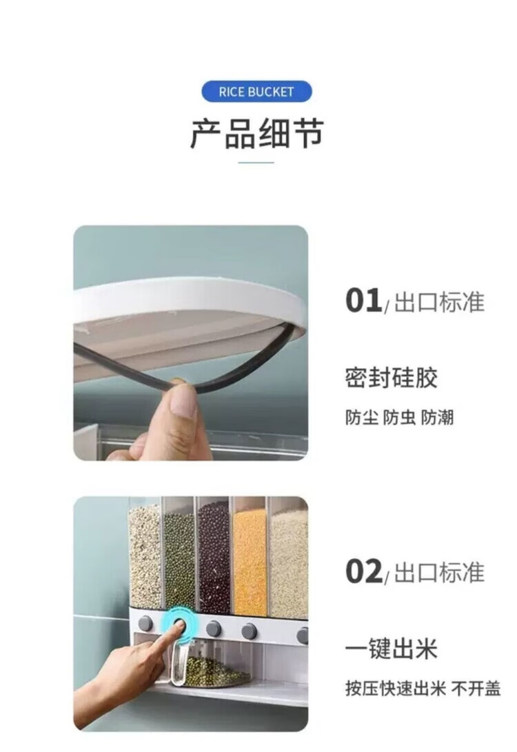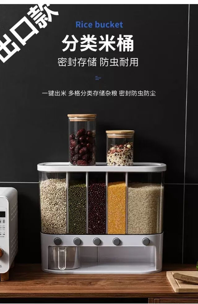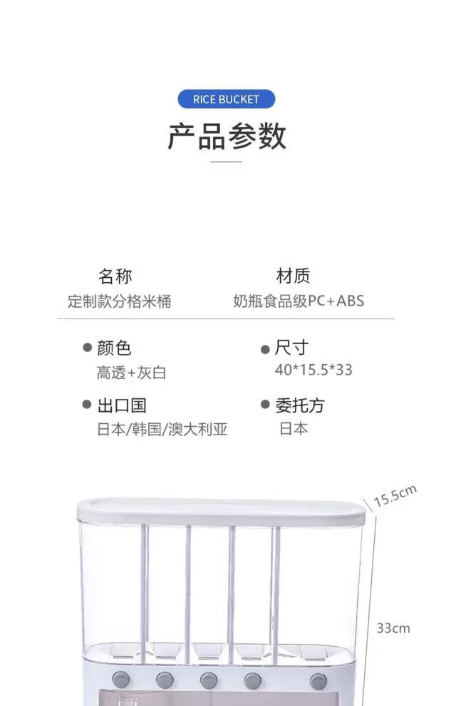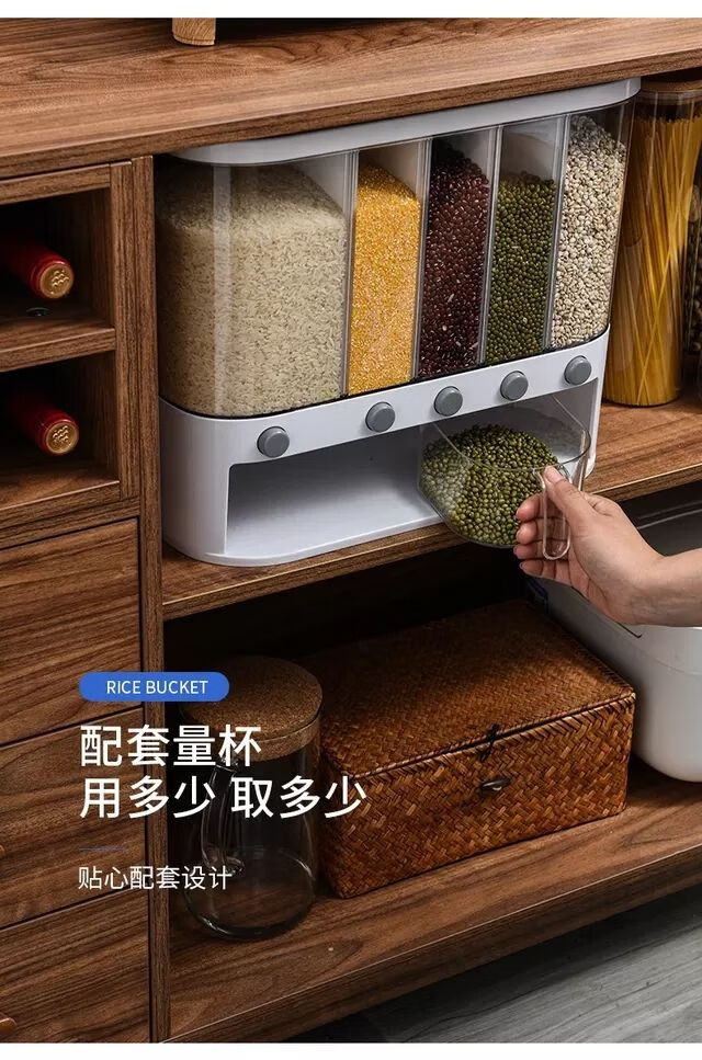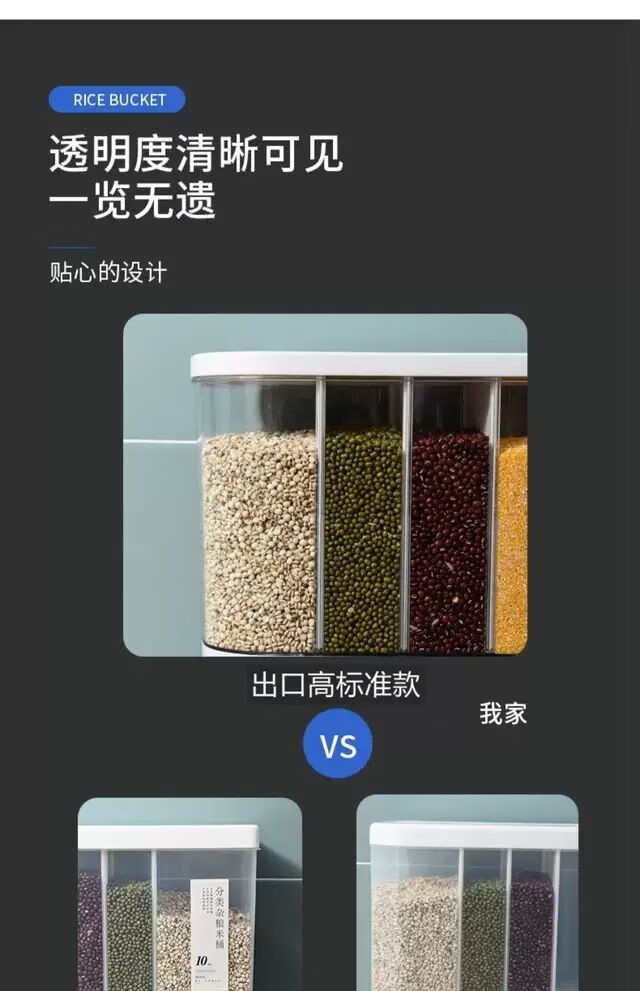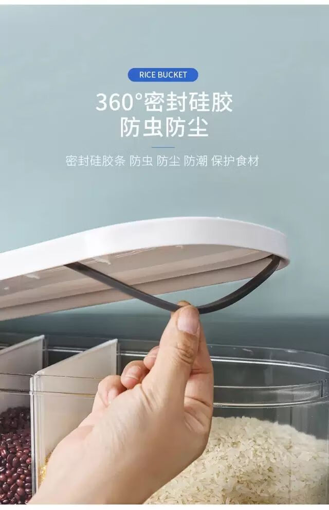 咏夏米桶自动出米20斤防虫防潮密封家用分格五谷杂粮储米箱分类收纳 卡扣款高透米桶