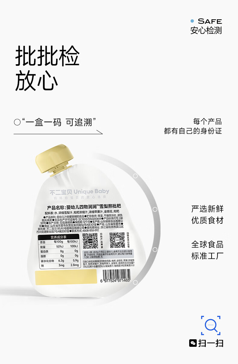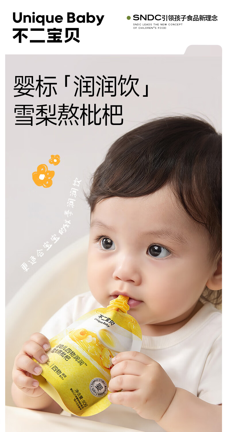 不二宝贝雪梨枇杷汁金银花婴儿苹果水儿童果汁搭无糖饮料秋梨膏 【3袋 | 6月+尝鲜】婴幼儿雪梨枇杷水 80g*3袋