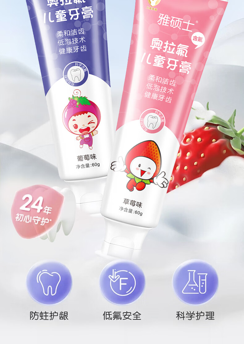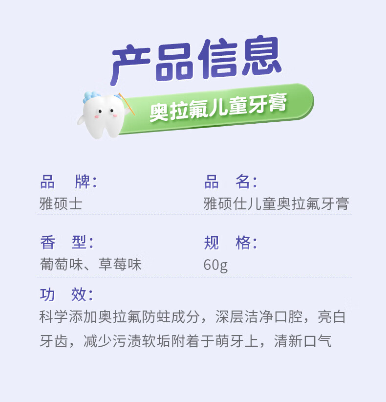 正品德国奥拉氟儿童防蛀牙膏1-12岁宝宝学生防龋齿虫牙含氟牙膏 1支*60g(雅硕士葡萄)