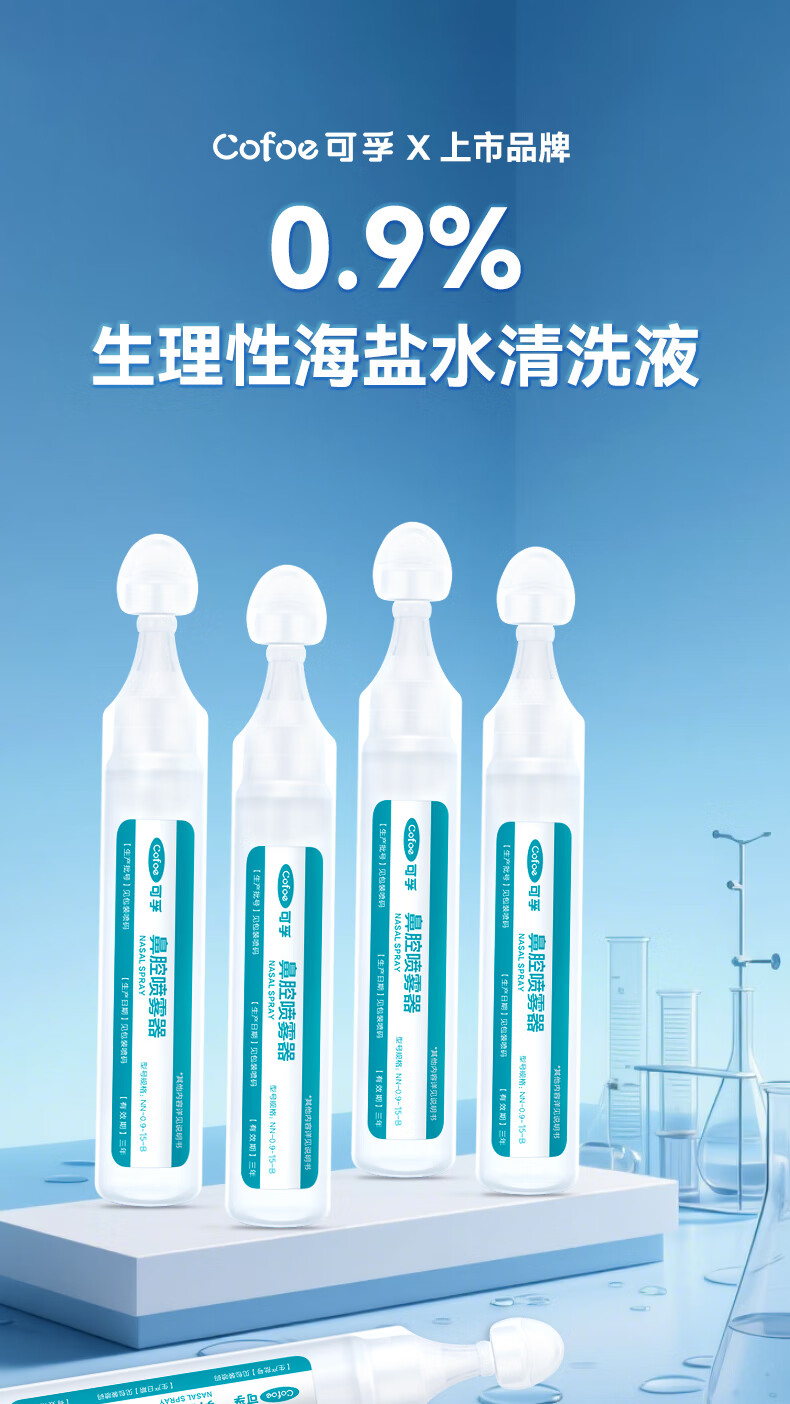 可孚 生理盐水清洗液医用0.9%氯化钠小支敷脸婴儿洗鼻伤口 15ml*14支