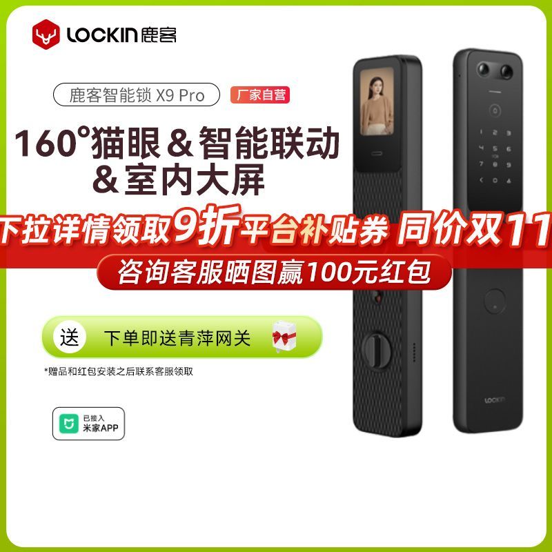 鹿客智能门锁X9Pro大屏家用已接入米家APP指纹密码E30猫眼款平替