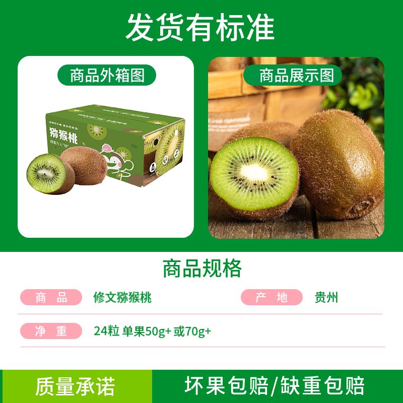 【百果园店】贵州修文贵长猕猴桃24粒彩箱新鲜水果现摘绿心包邮