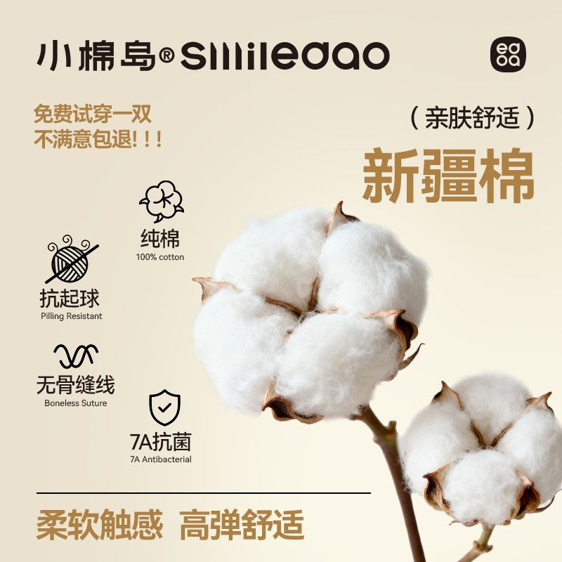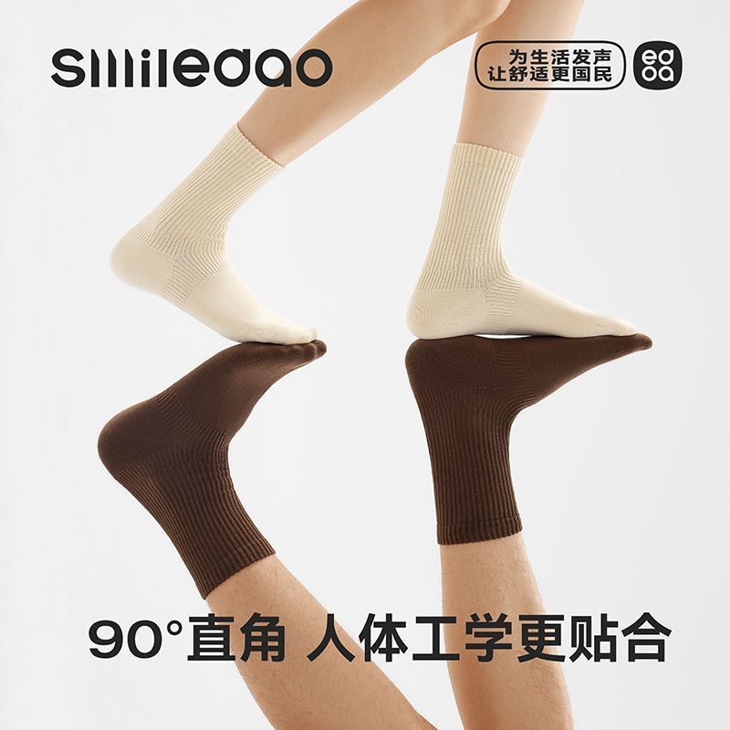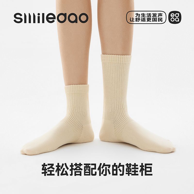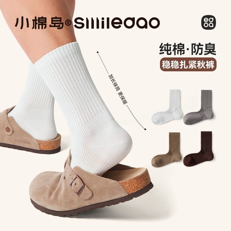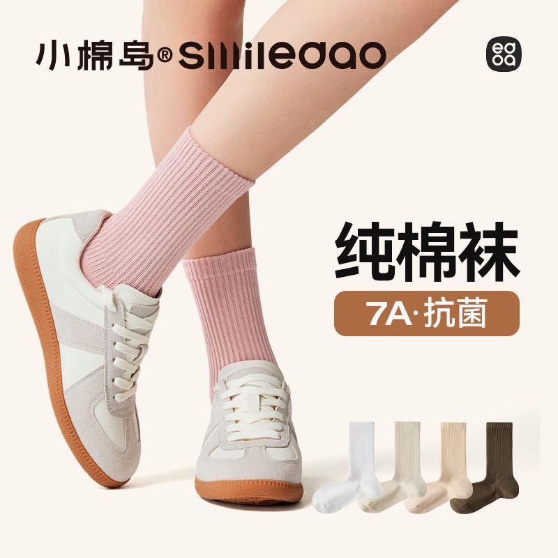 小棉岛7A抗菌中筒袜男袜女袜通用保暖百搭4双装100%百棉运动透气
