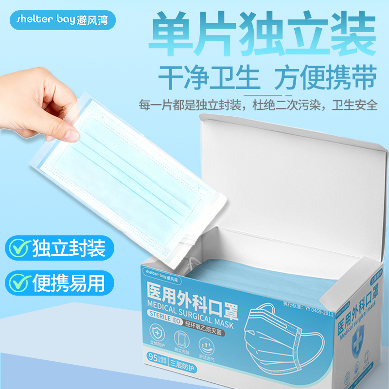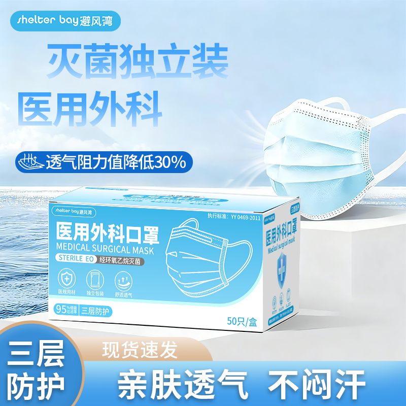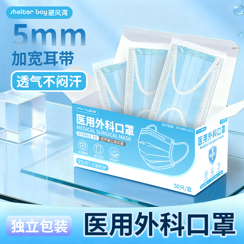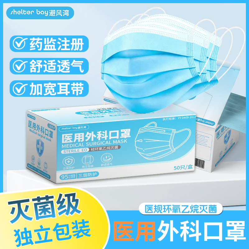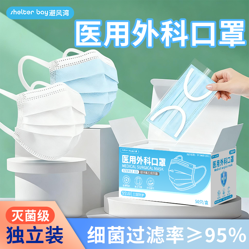 灭菌级医用外科口罩成人独立包装防病菌不勒耳一次性三层防护正品