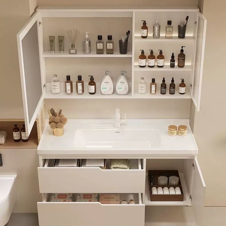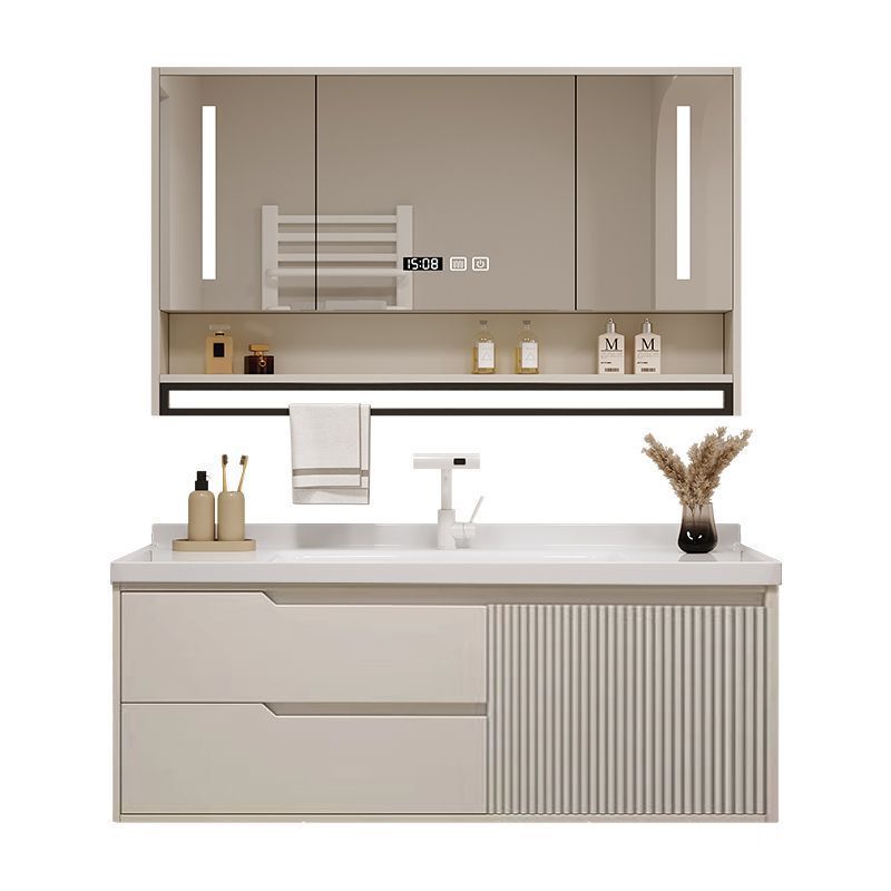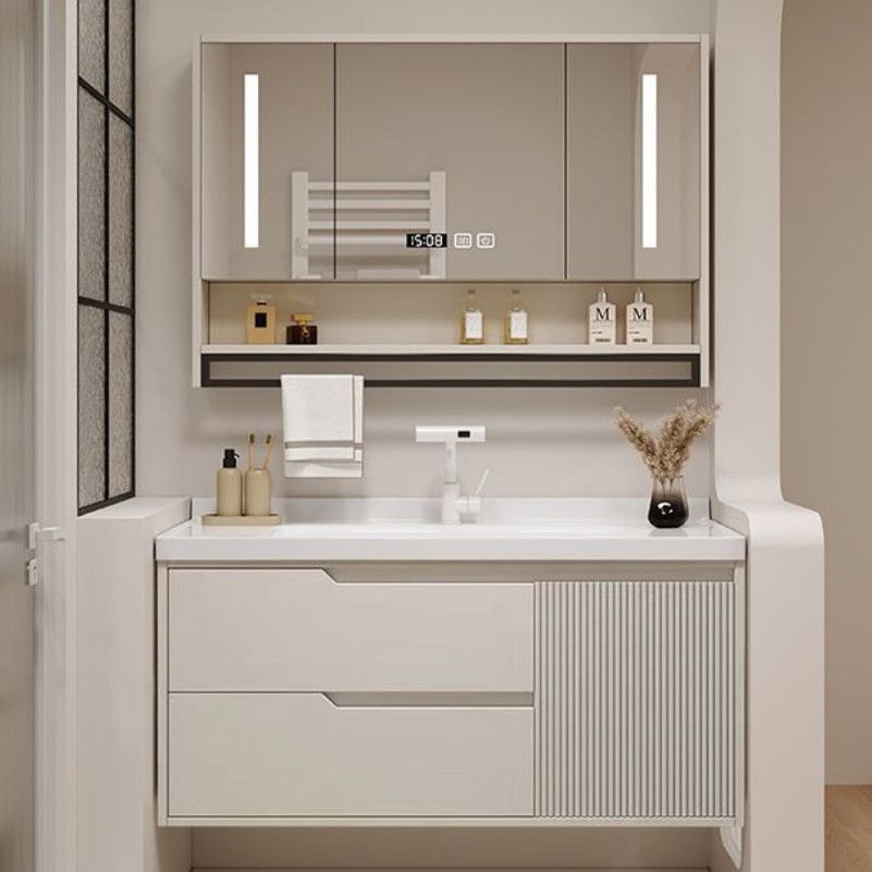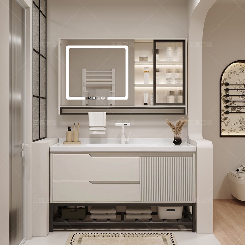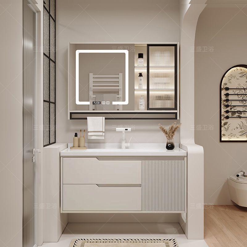 新款浴室柜卫生间奶油风洗手洗漱洗脸盆智能简约洗手池陶瓷一体盆
