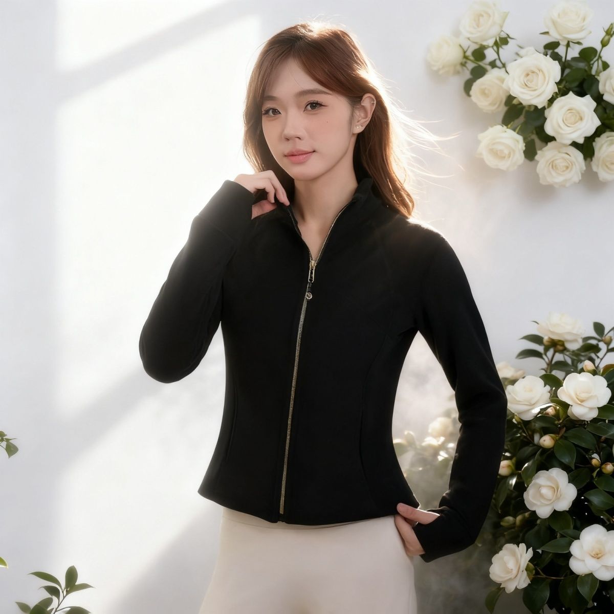 修身显瘦小蛮腰立领外套女秋冬加绒卫衣设计感通勤长袖上衣修身卫